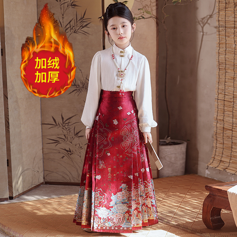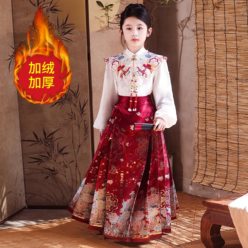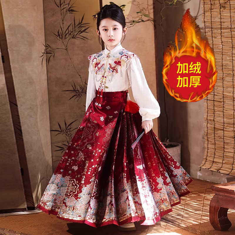 马面裙女童套装秋冬季2025新款冬装中国风汉服儿童新年拜年服冬款