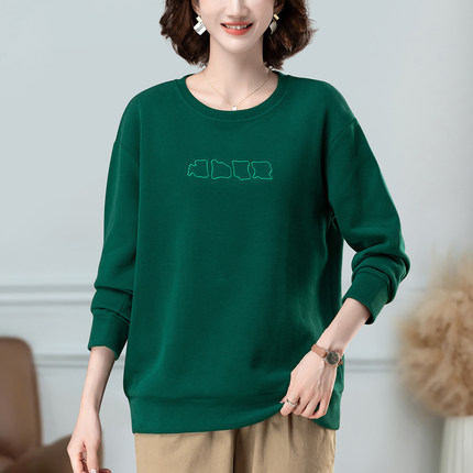 中老年妈妈卫衣春秋新款加肥加大码女装宽松圆领休闲遮肉显瘦上衣