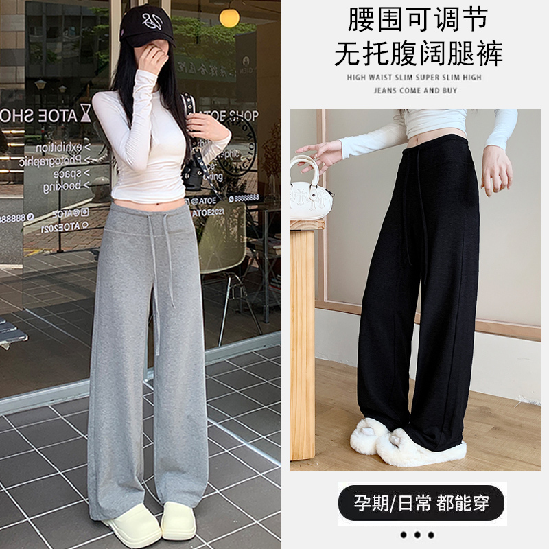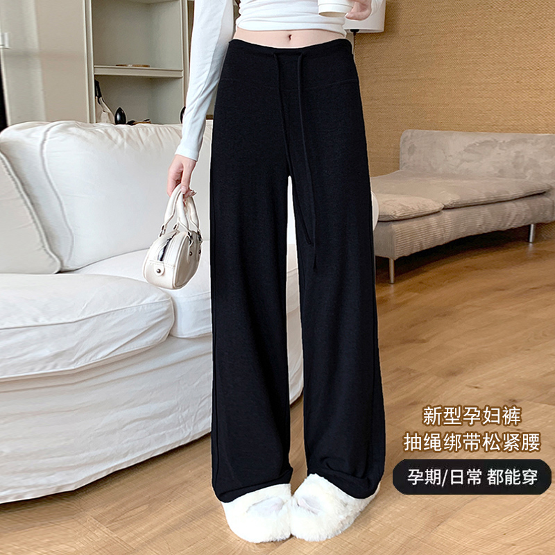 孕妇裤子夏春秋针织阔腿裤薄款垂坠感无托腹高腰外穿打底裤休闲裤