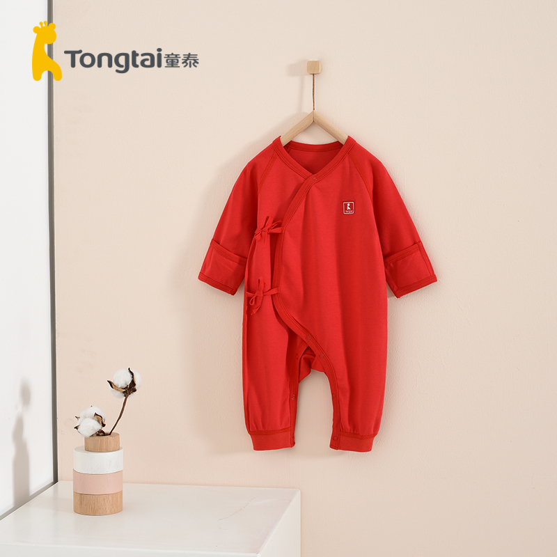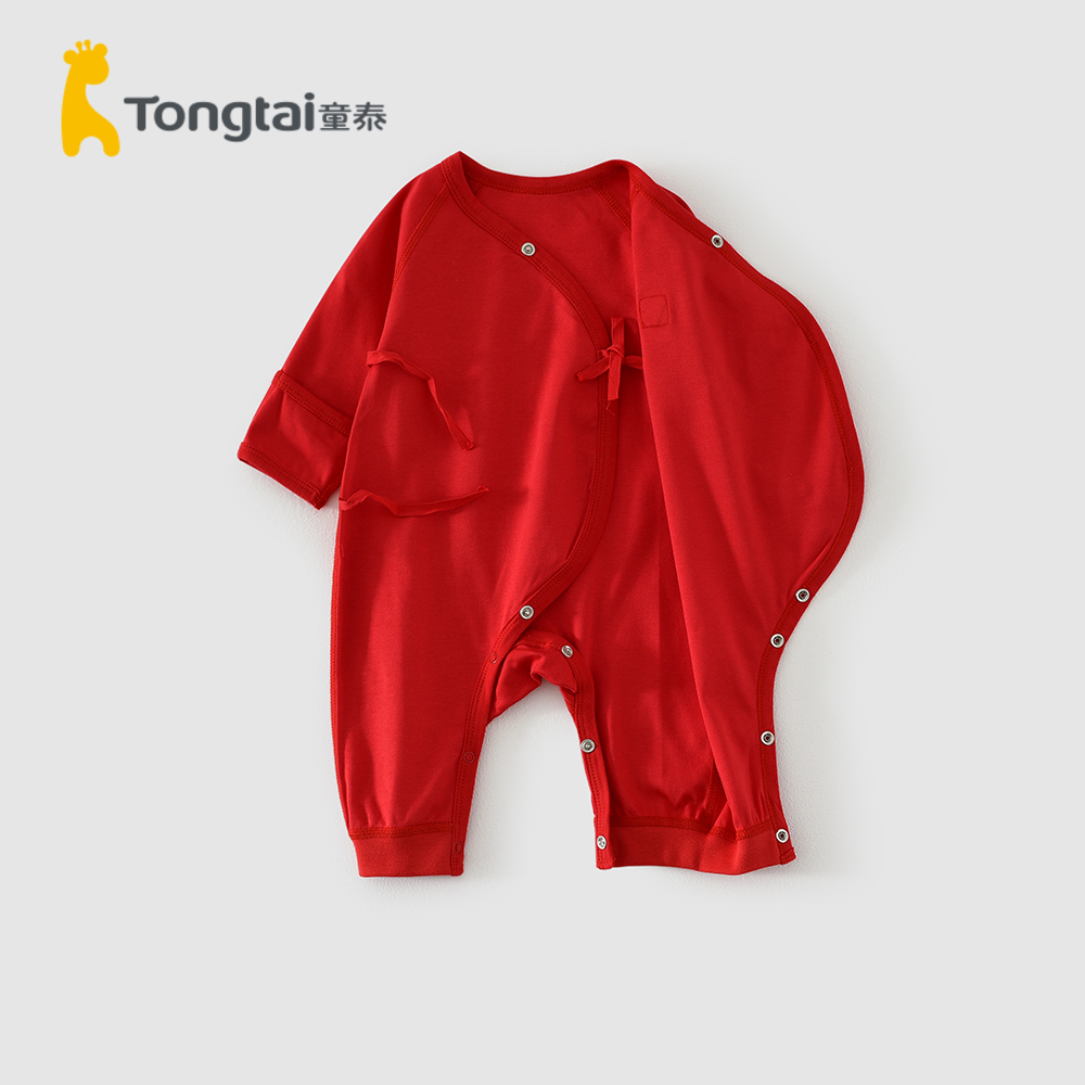 童泰春秋款新生婴儿满月喜庆男女宝宝秋冬连体大红蝴蝶衣纯棉哈衣