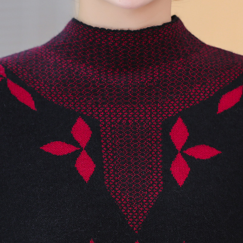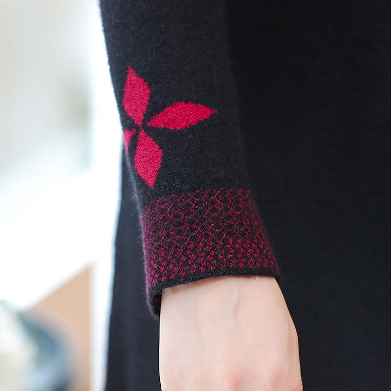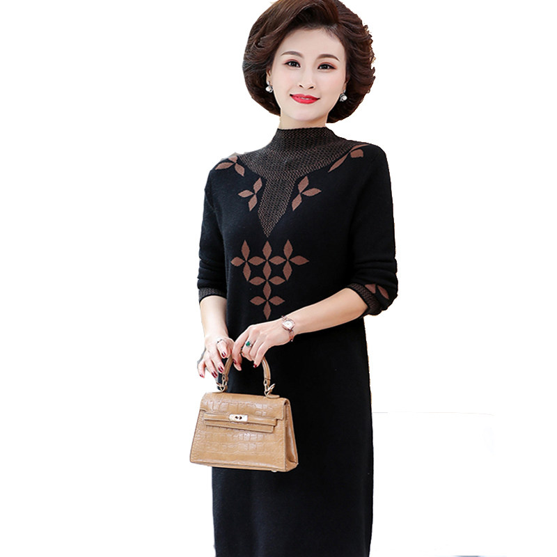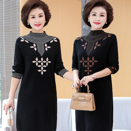 妈妈秋冬新款毛衣连衣裙加肥加大中老年女装针织中长款羊毛打底衫