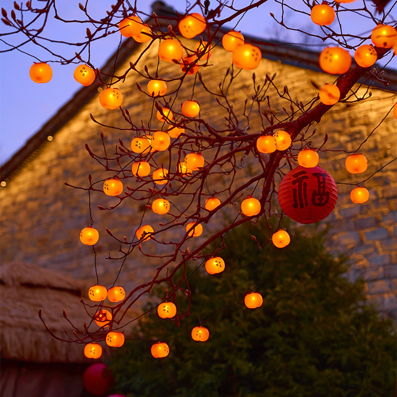 户外太阳能柿子灯串彩灯2026新款氛围灯笼过新年庭院挂树上装饰灯