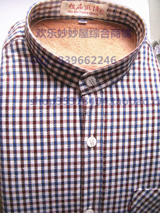 优质全棉手工老粗布 加绒加厚男士长袖格子立领衬衫土布男式衬衣