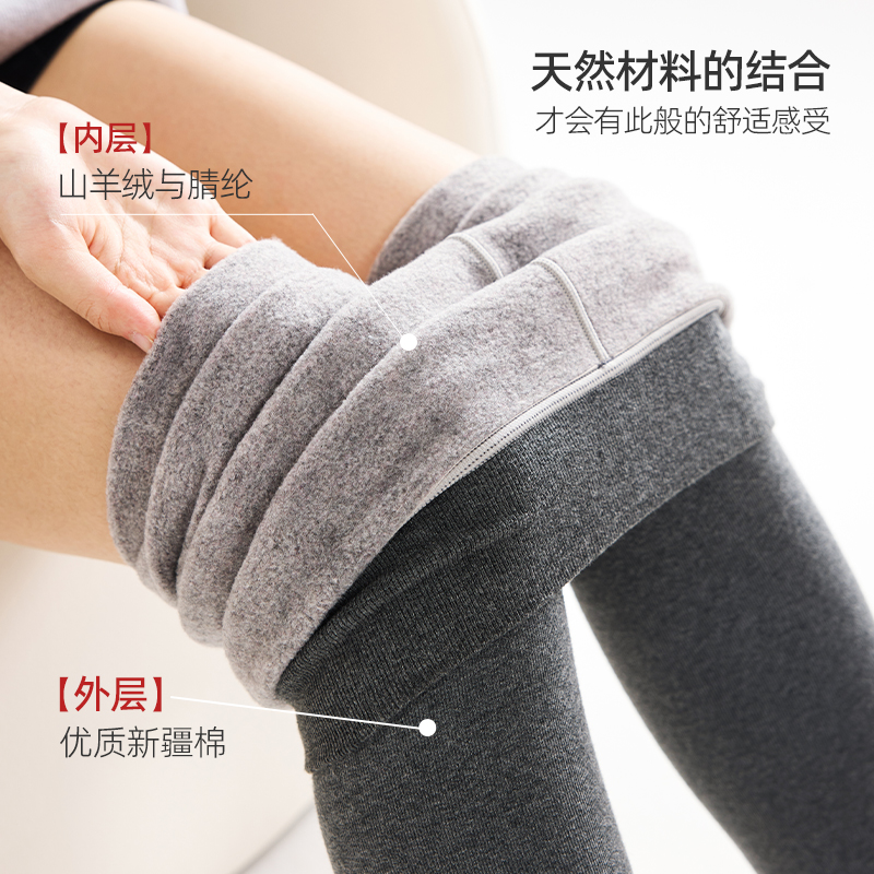 猫人高腰收腹打底裤女2025新款灰色羊毛加绒冬季外穿棉毛保暖裤