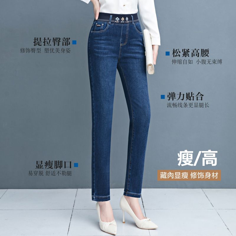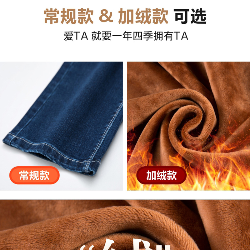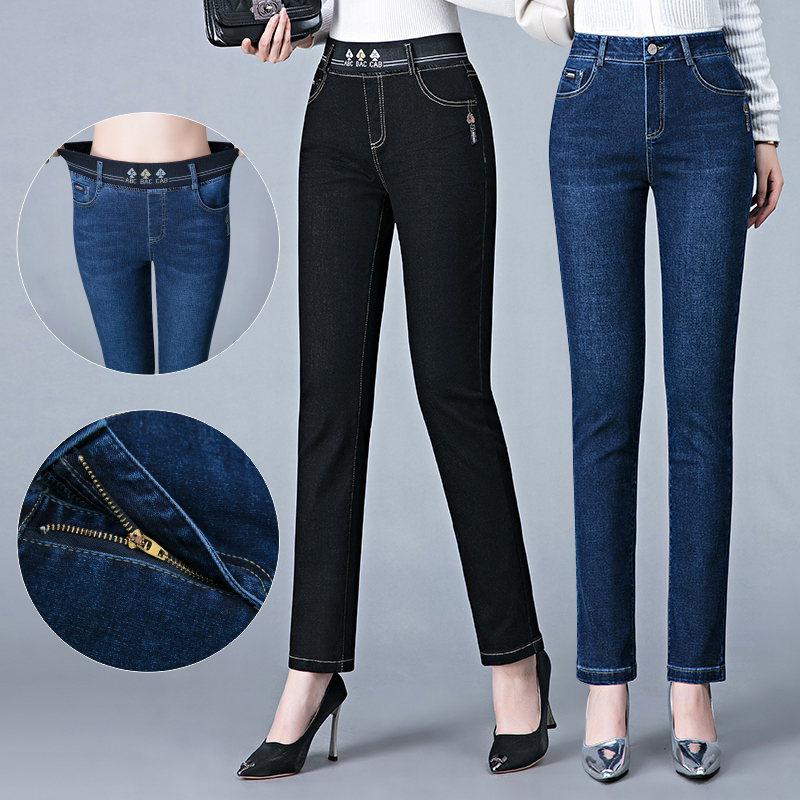 中年妈妈牛仔裤秋冬松紧高腰弹力直筒休闲显瘦长裤中老年女裤加绒