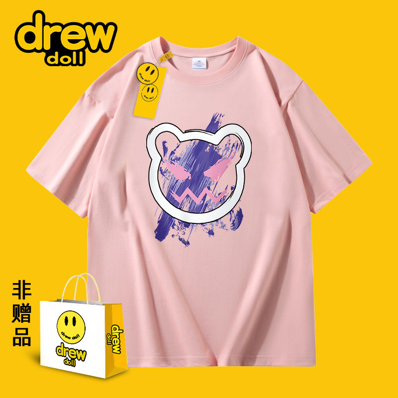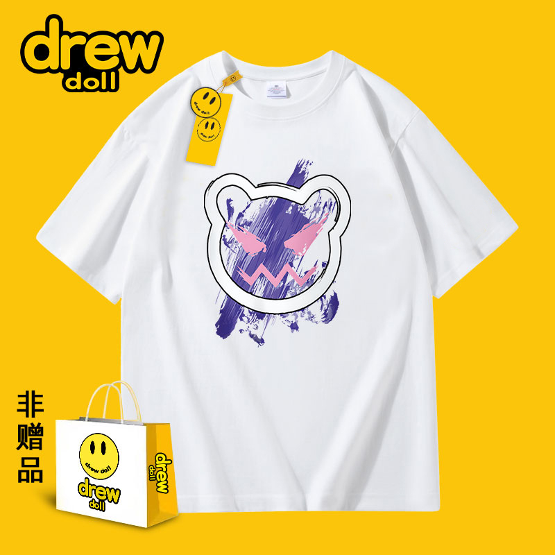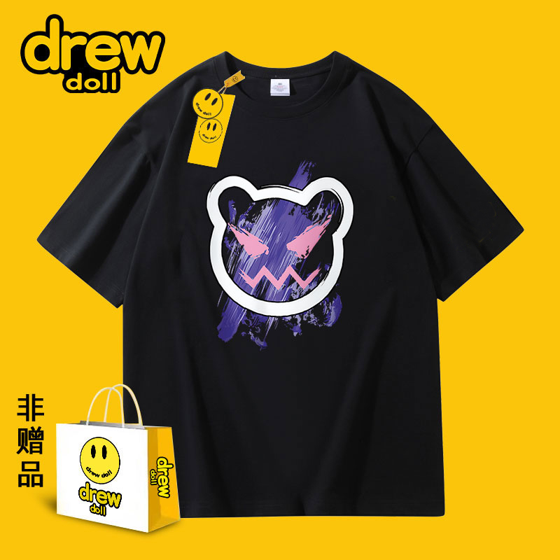 Drew新款暴力熊纯棉短袖t恤夏季时尚潮流户外运动情侣休闲上衣