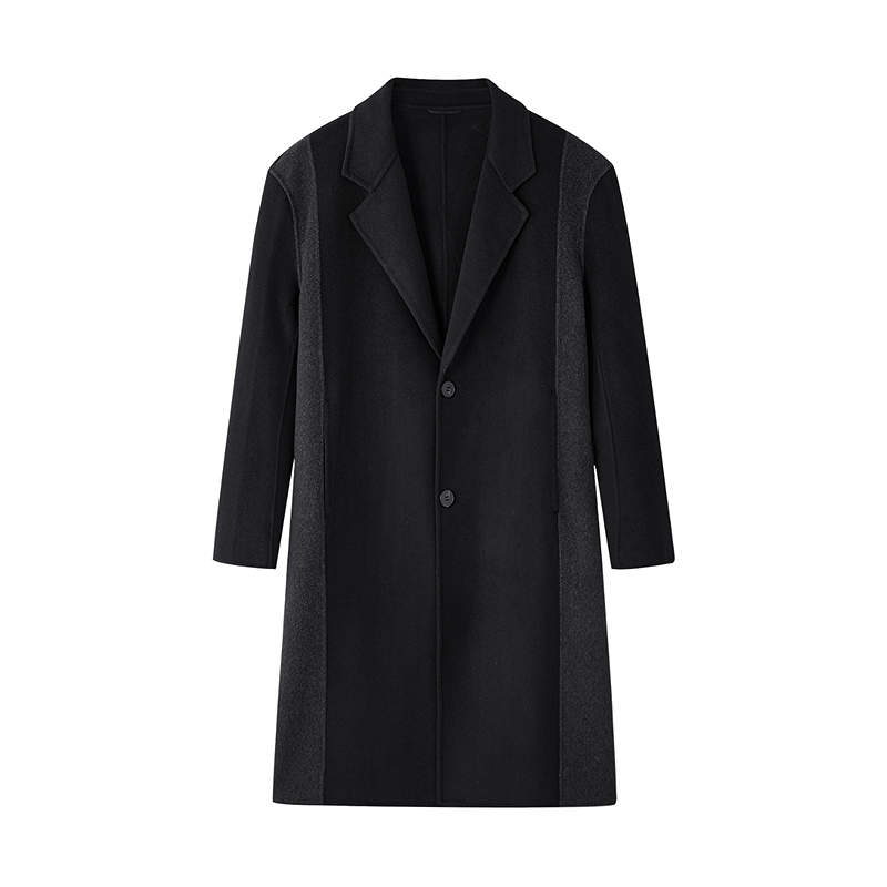 HLA/海澜之家含羊毛大衣2025秋冬新款双面呢长款西装领廓形外套男