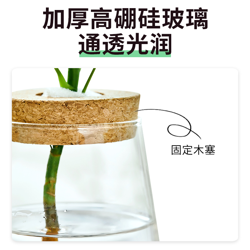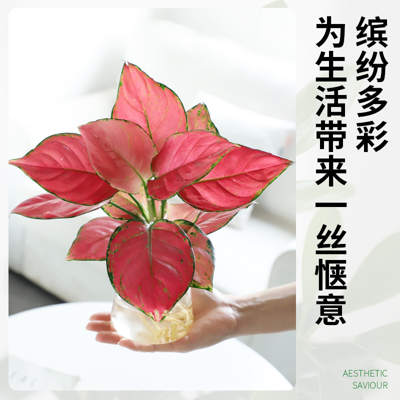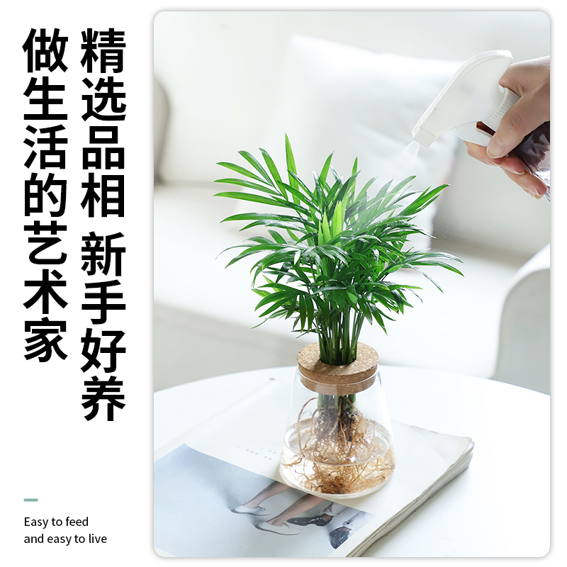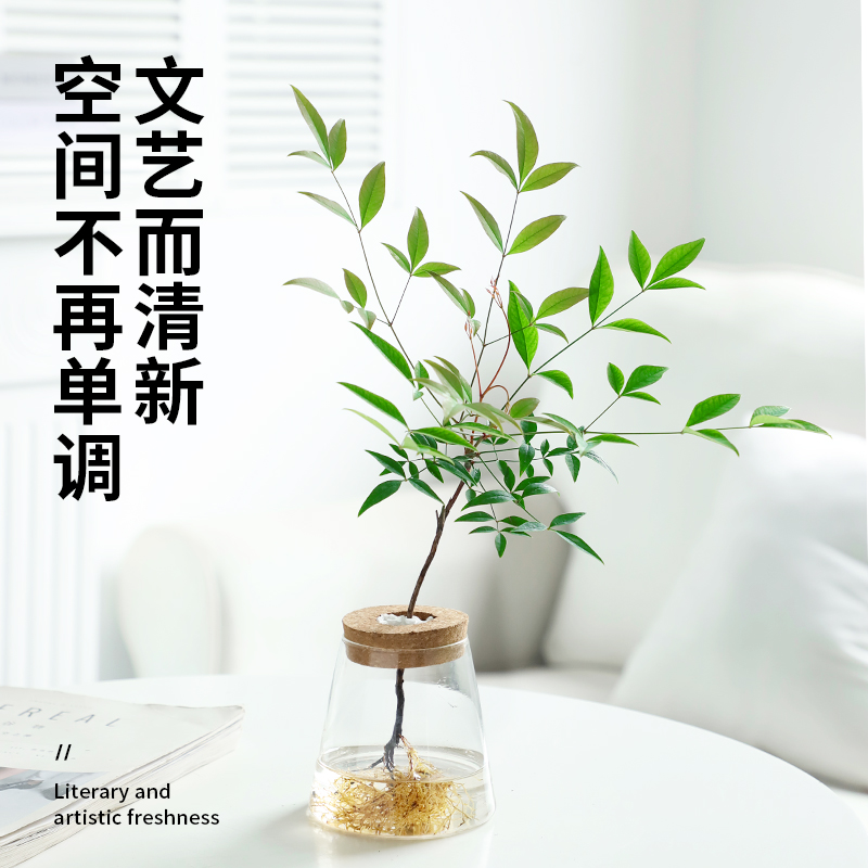 桌面无土纯水培植物室内好养办公室绿植玻璃花瓶春羽发财树含羞草