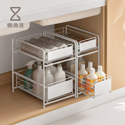 懒角落下水槽置物架厨房收纳拉篮橱柜下抽拉式浴室卫生间水池分层