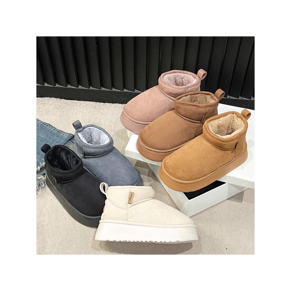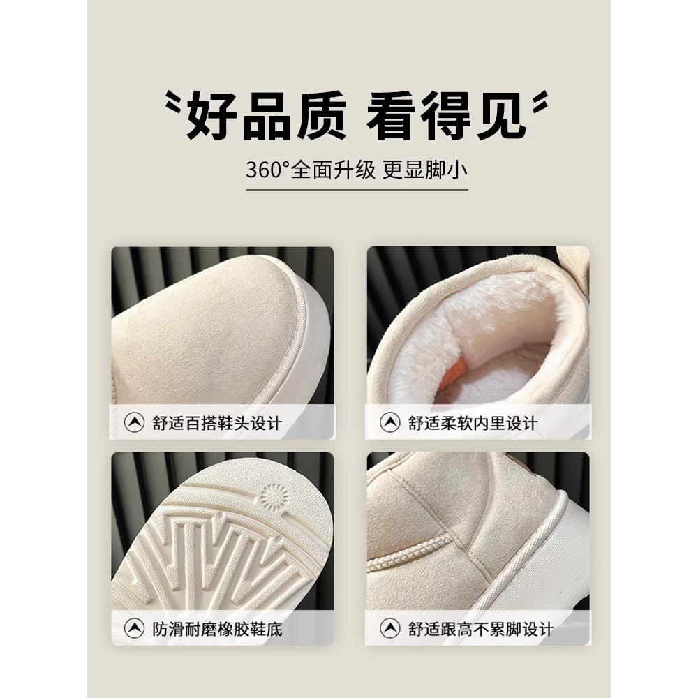 白色厚底雪地靴女冬季2025年新款加绒加厚短筒毛毛短筒棉靴短靴子
