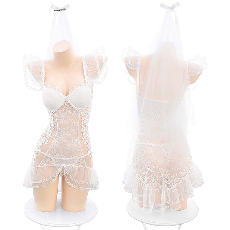 霏慕含钢圈棉垫鱼尾裙头纱睡裙女