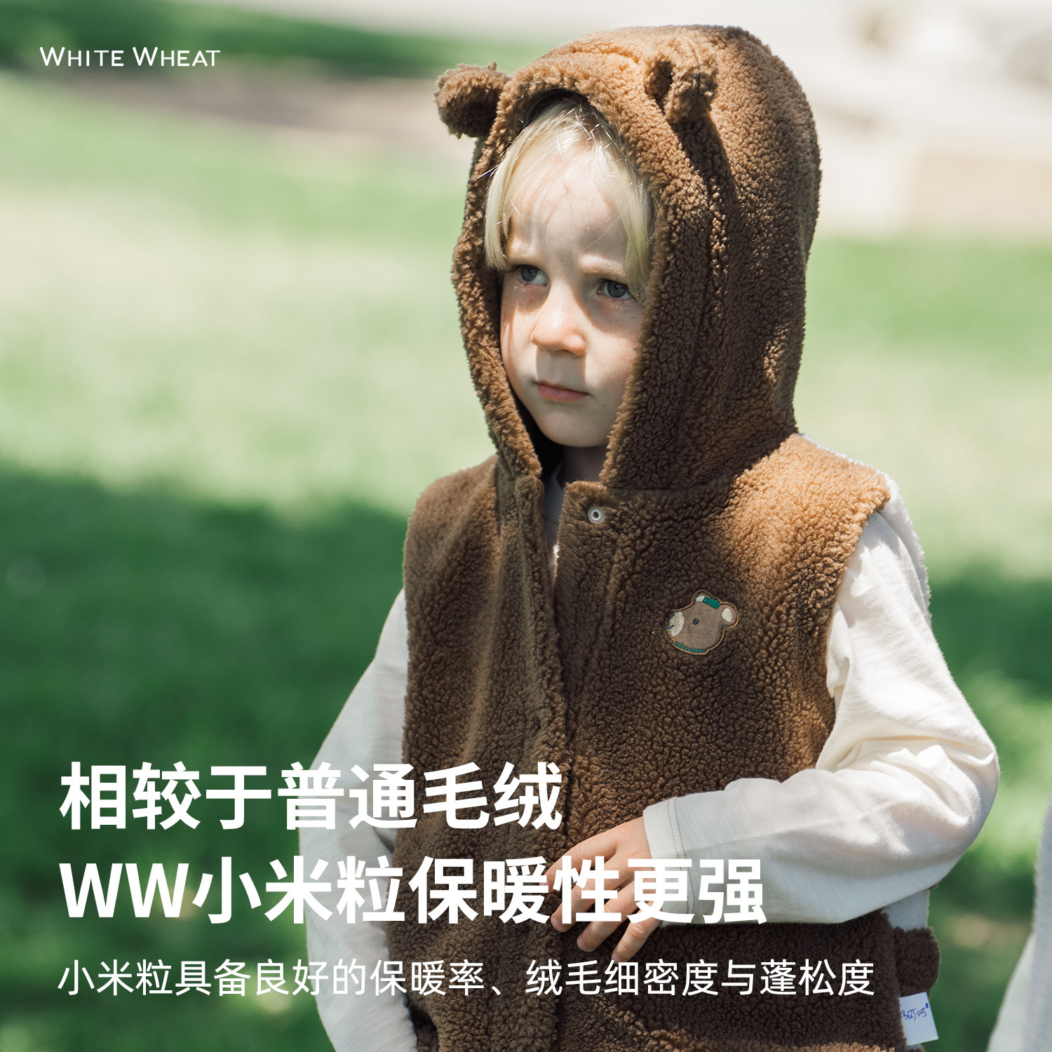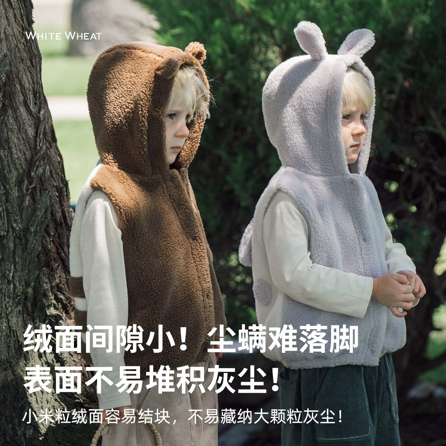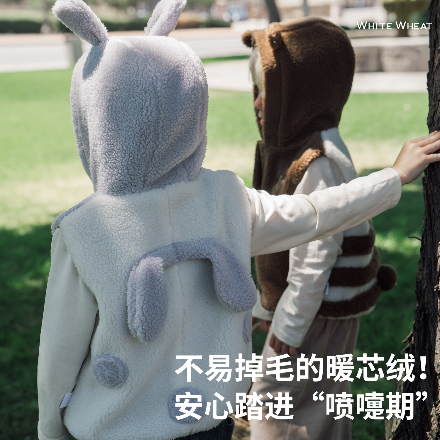 whitewheat兔耳朵连帽马甲