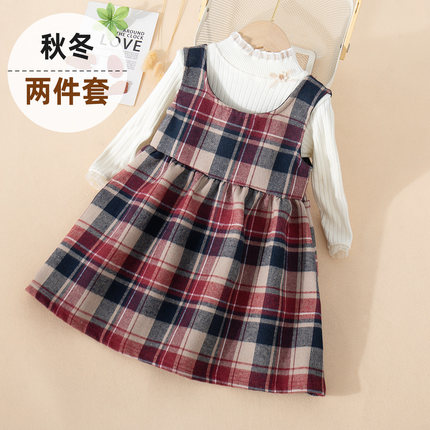 女童春秋连衣裙两件套儿童秋装女宝宝呢子背心裙打底衫