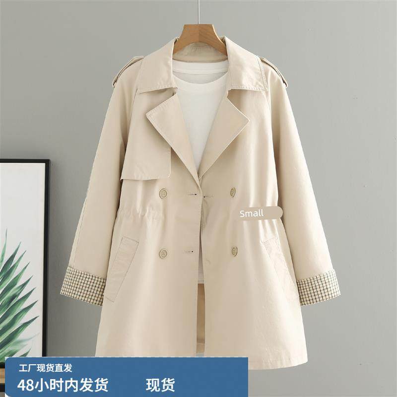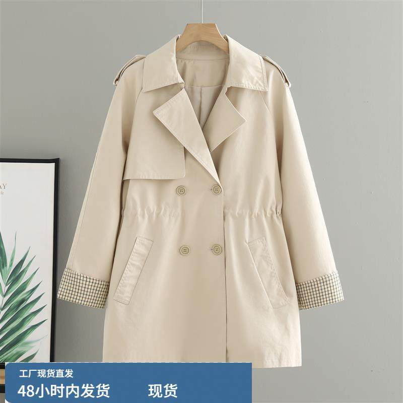 中长款抽绳收腰风衣外套女秋季新款韩版修身显瘦小个子双排扣大衣
