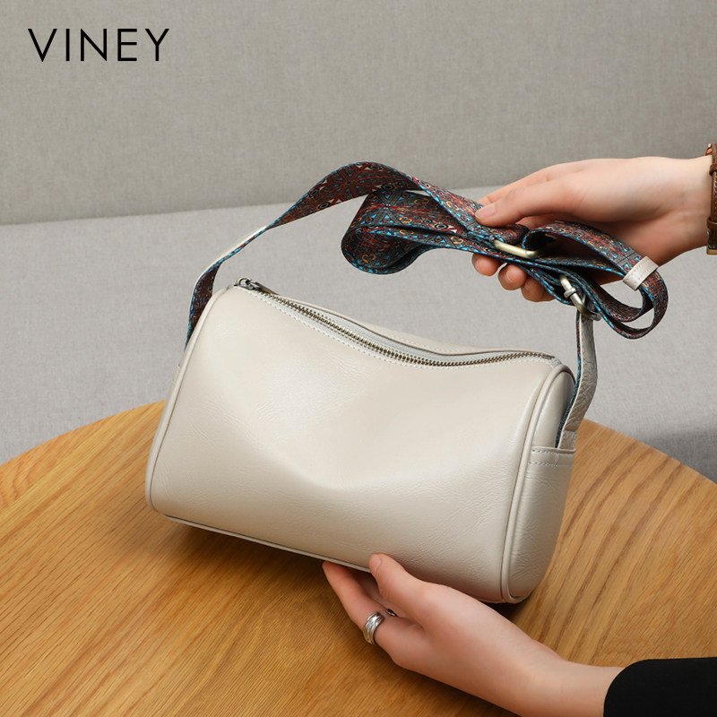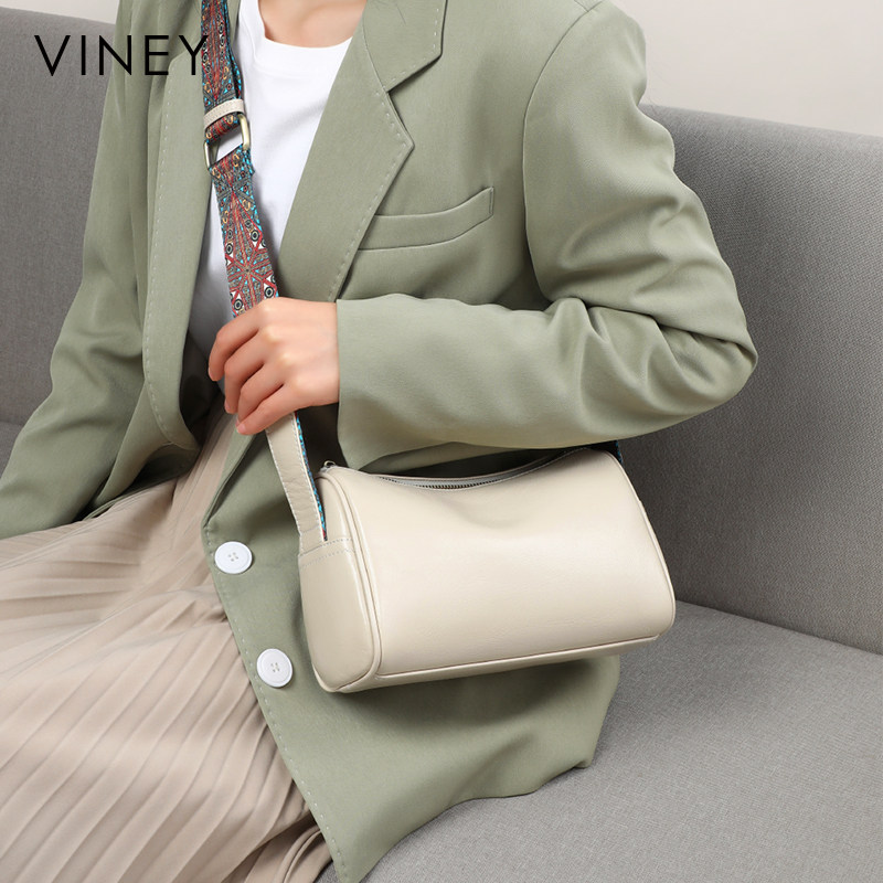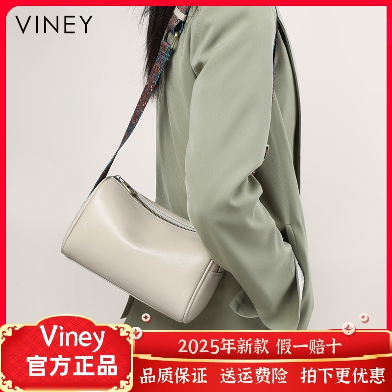 Viney包包女网红新款斜挎包女包水桶包圆筒包真皮夏季网红枕头包
