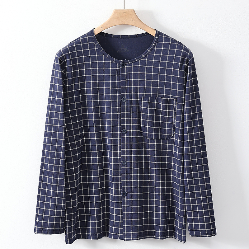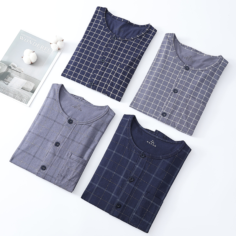 中老年人夏季薄款长袖开衫睡衣男款爸爸家居服春秋上衣爷爷空调服