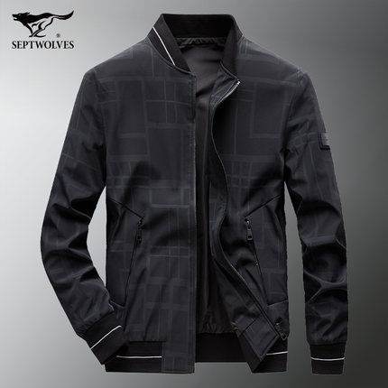 七匹狼男装夹克狼族生活秋季棒球领黑色潮流韩版休闲潮牌男士外套