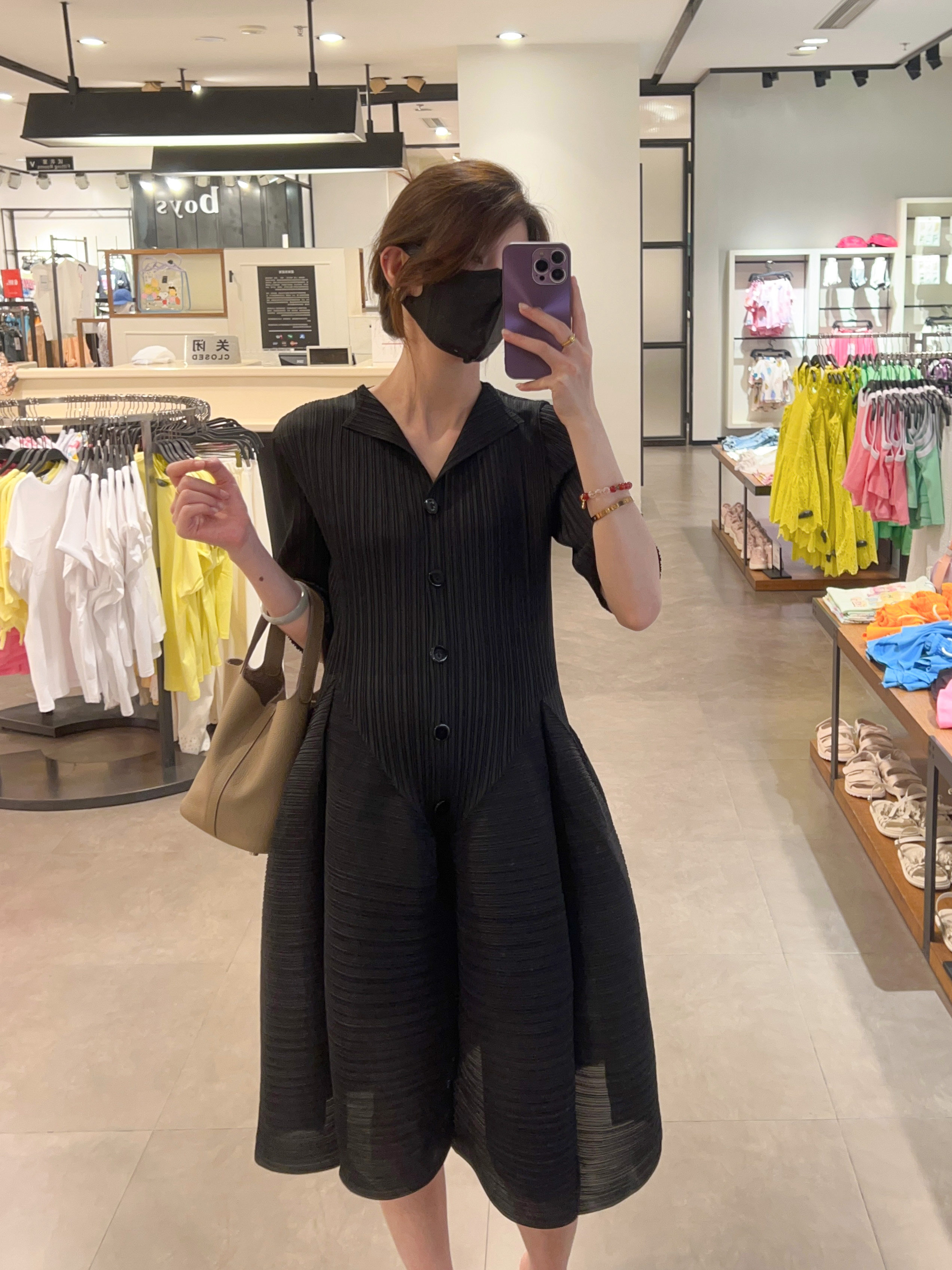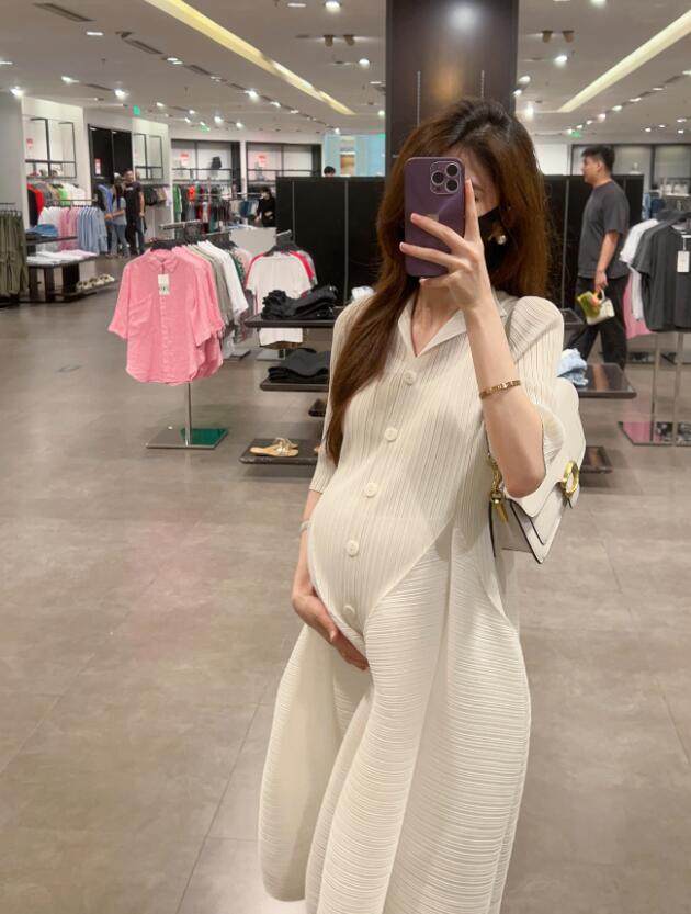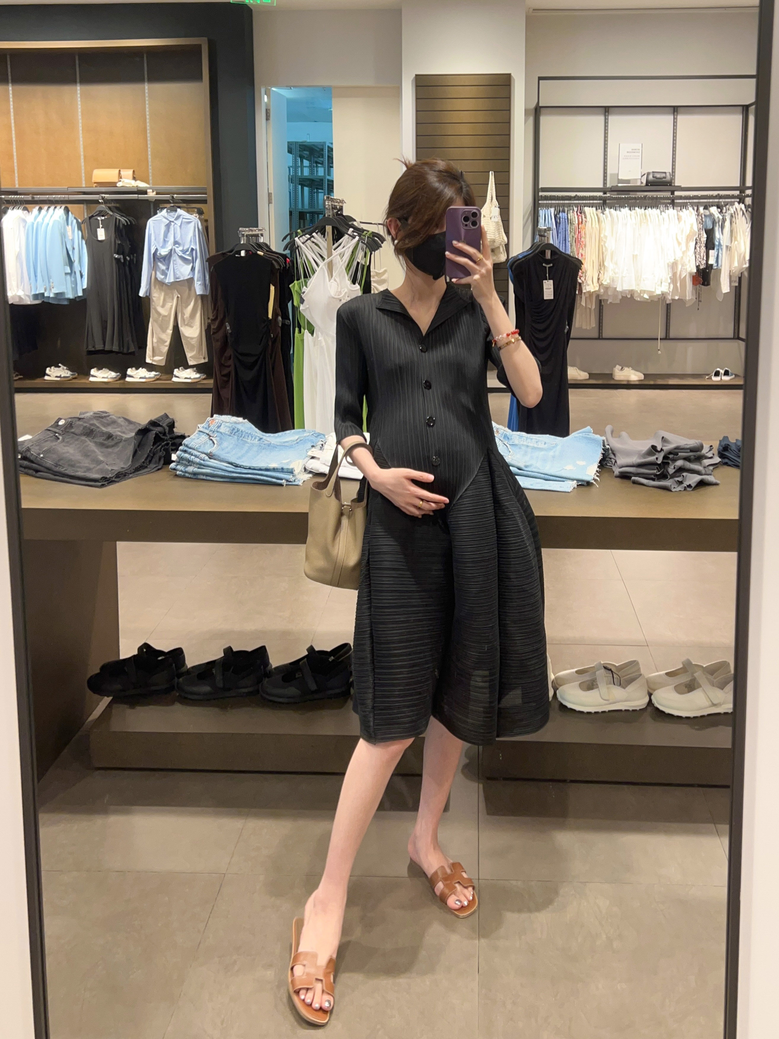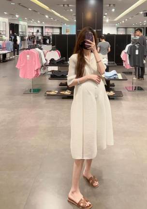 海德妈咪孕妇装夏三宅褶皱不规则气质优雅简约高级休闲polo连衣裙