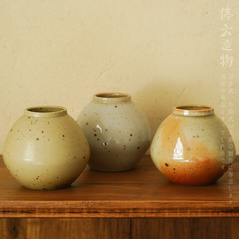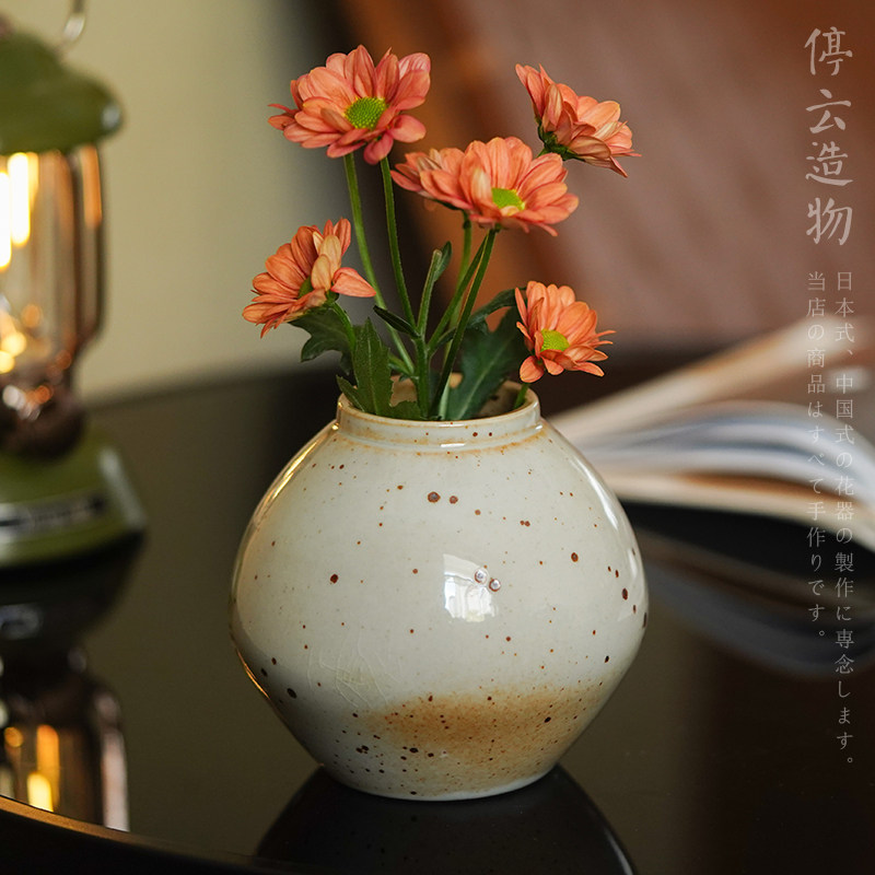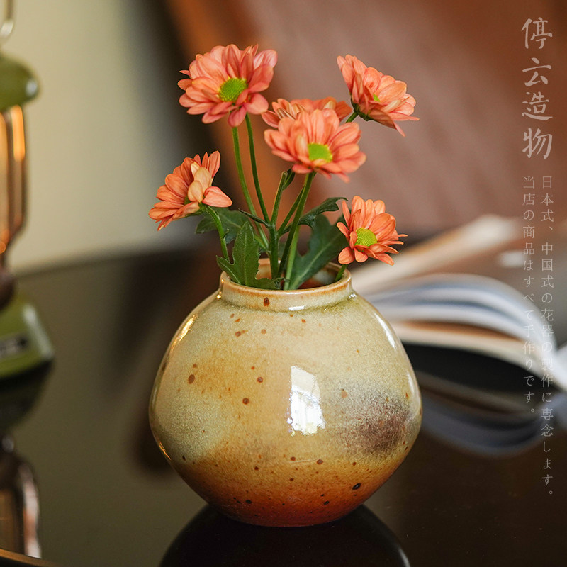 日式复古小花插粗陶柴烧风