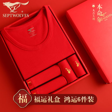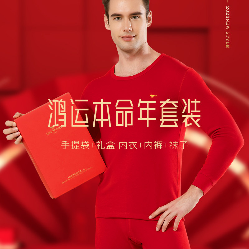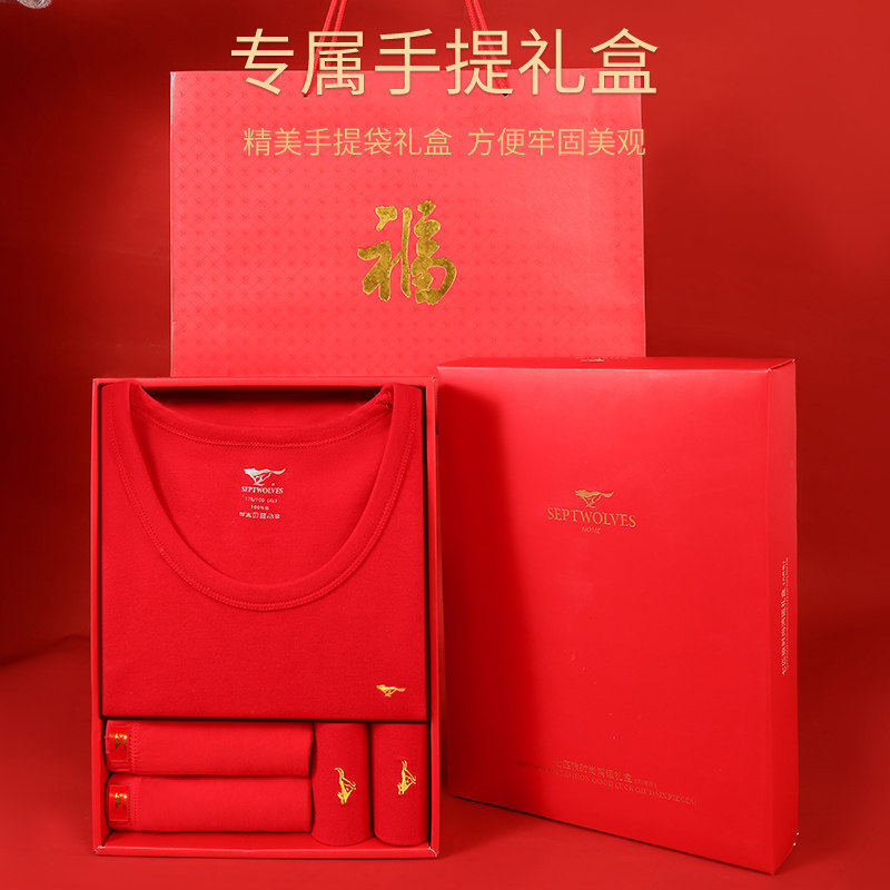 七匹狼本命年2026马年男士红色衣服新郎结婚礼物女士保暖内衣套装