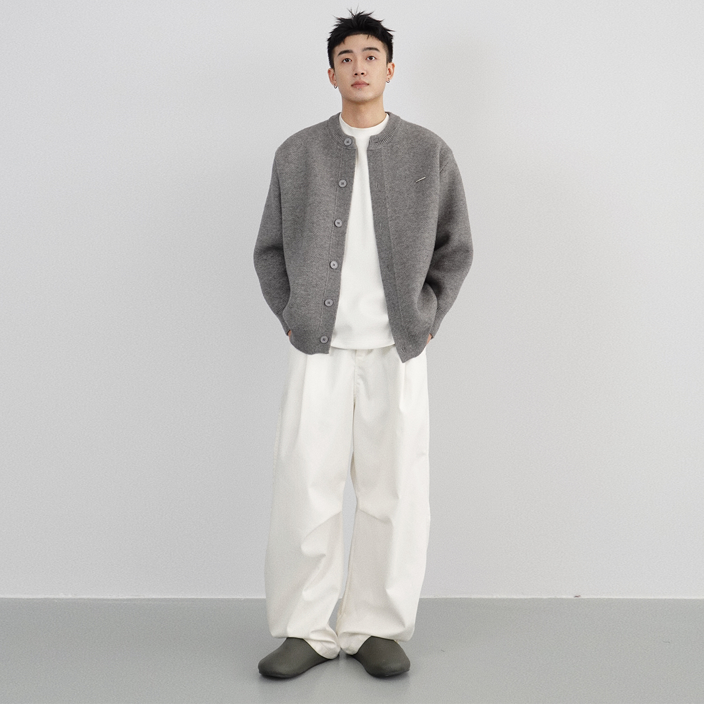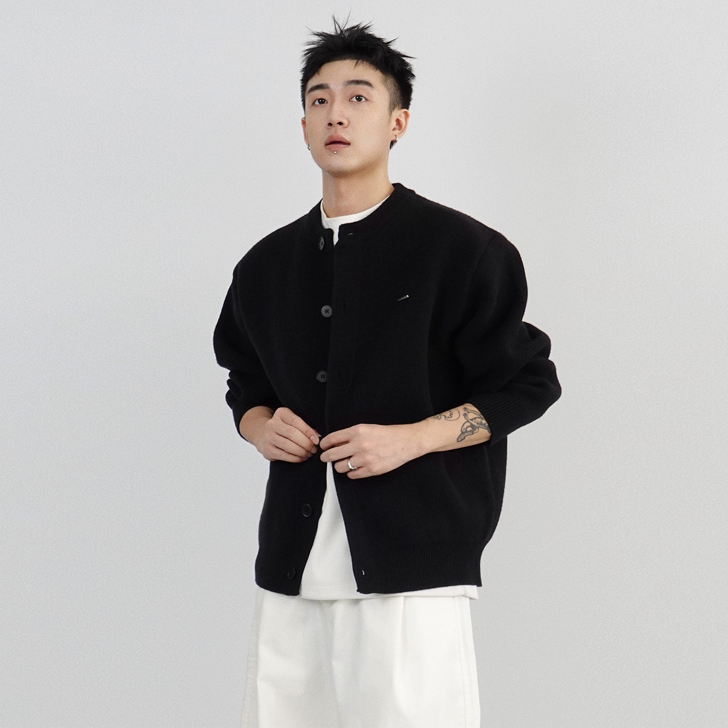 秋季纯色流行复古独特超好看宽松休闲百搭针织开衫毛衣外套男