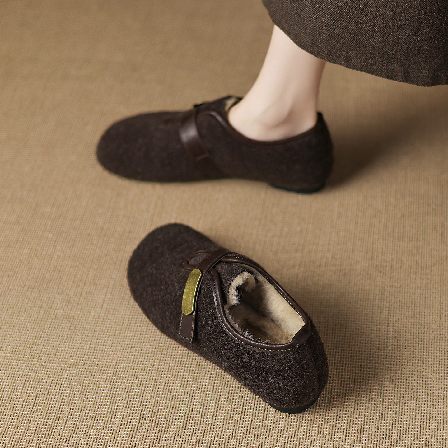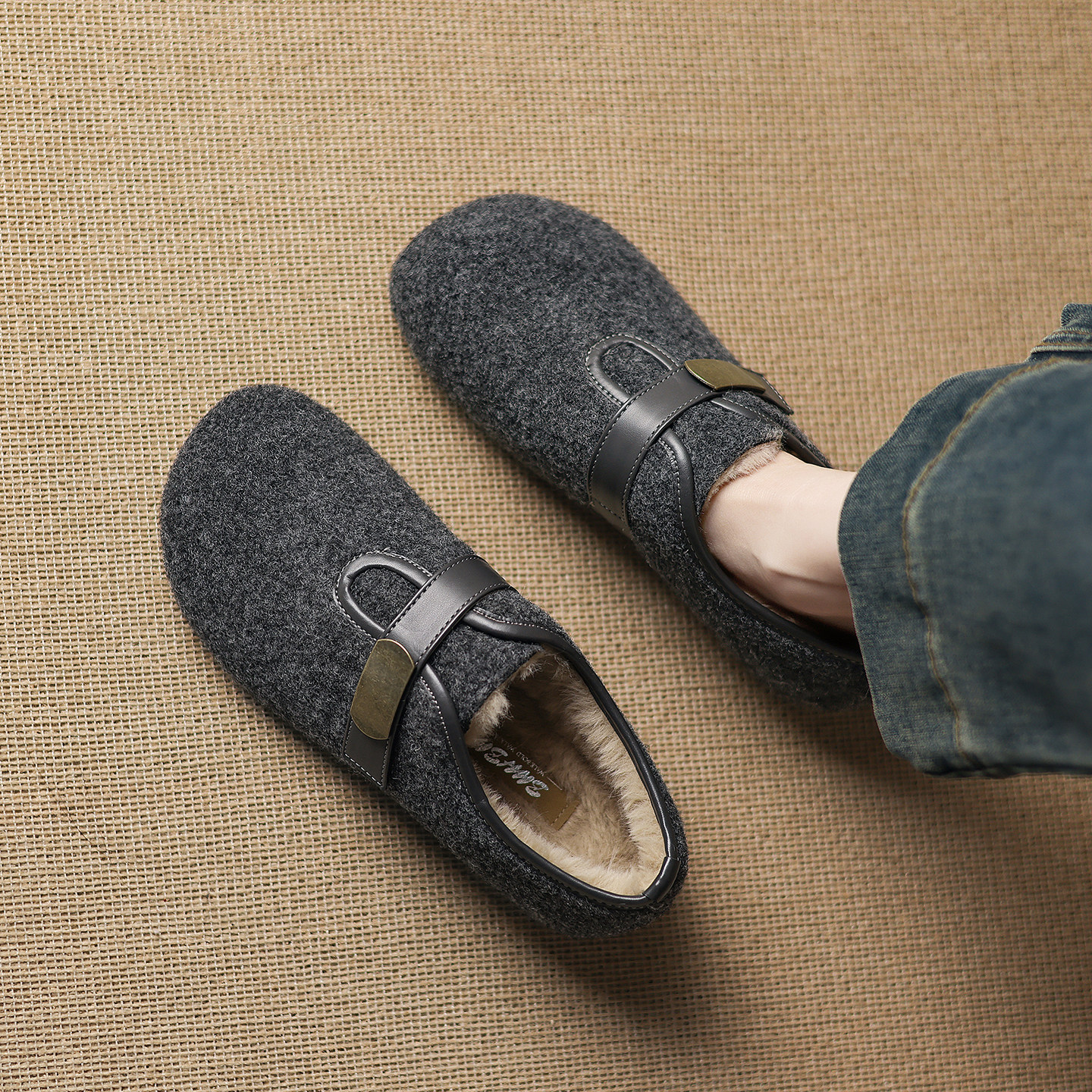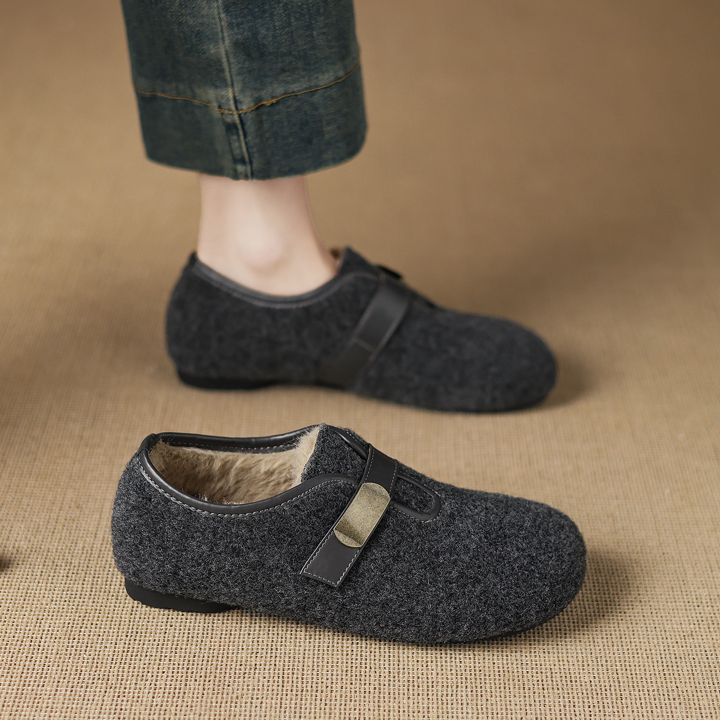 复古加绒勃肯鞋女冬爆款一脚蹬毛毛玛丽珍鞋外穿平底保暖女款棉鞋
