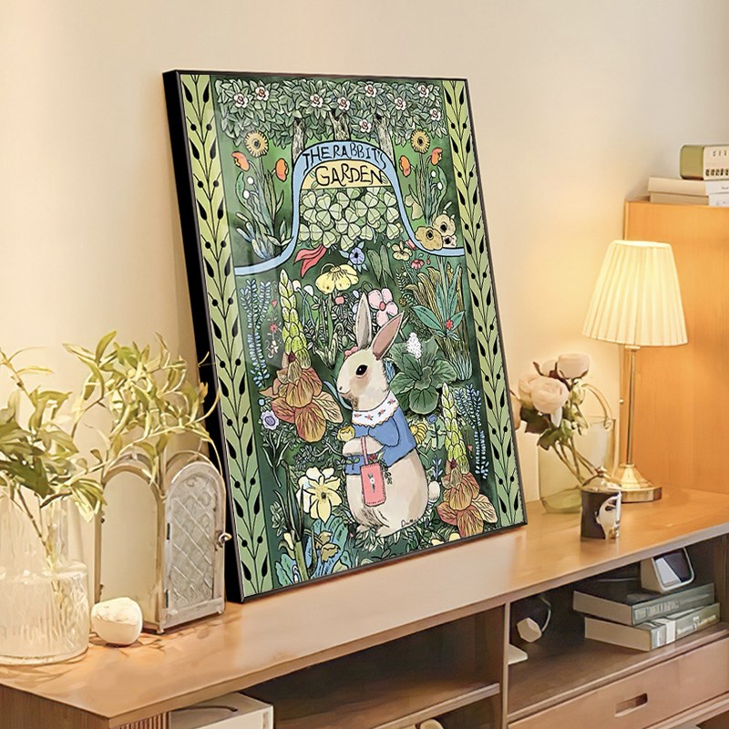 钻石画带框满钻兔小姐高级感复古手工贴卧室儿童卡通装饰十字绣5d