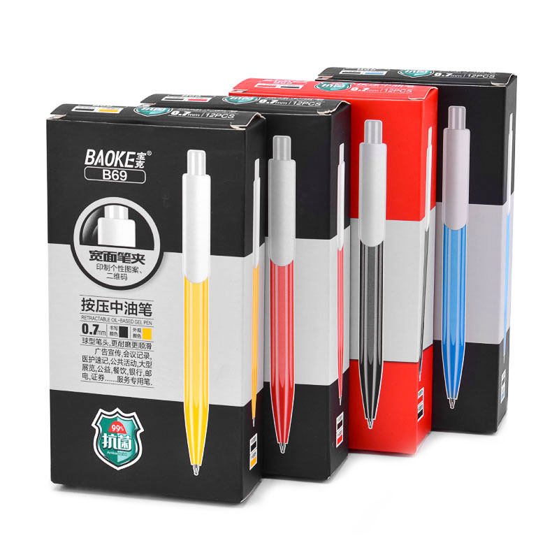 宝克B69抗菌多色按压中油笔个性定制广告logo可刻印字圆珠笔0.7mm