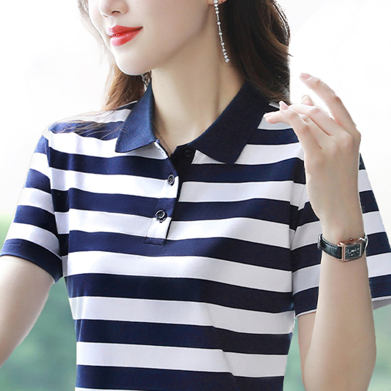 外贸原单撤柜尾货清仓捡漏纯棉条纹百搭t恤女上衣中年妈妈polo衫