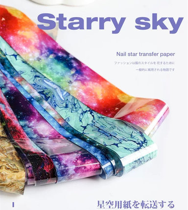 爆款网红日式美甲饰品夜空银河贝壳纹大理石纹晕染星空转印纸贴纸