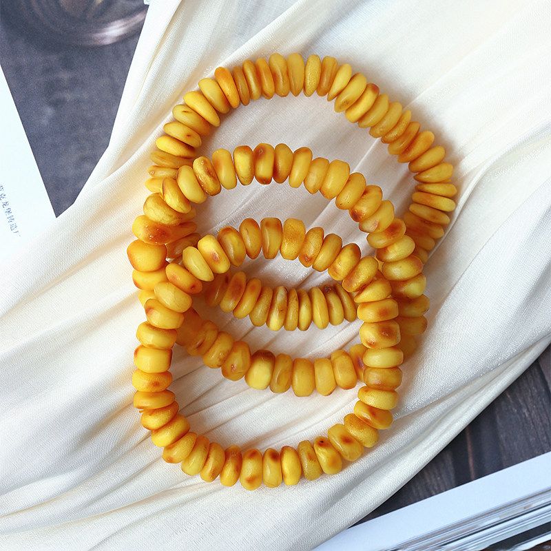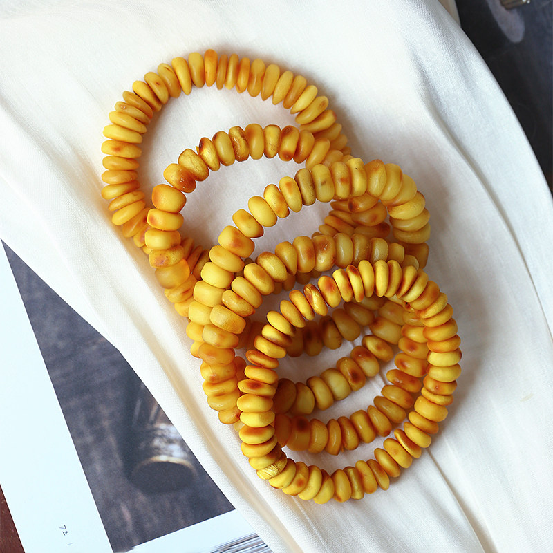 天然蜜蜡随形盘珠随形饼子款手链男女款蜜蜡琥珀不规则手串饰品