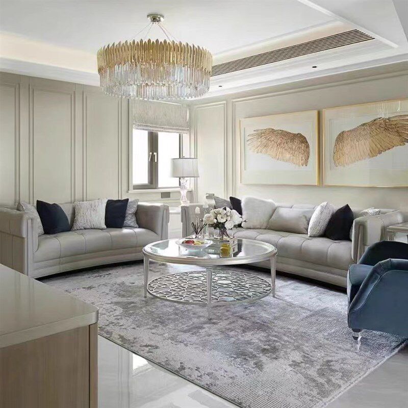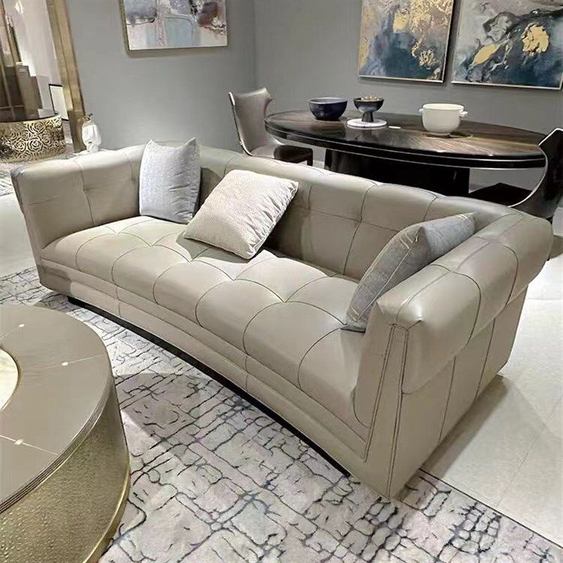 美式轻奢皮艺沙发后现代简约客厅多人位拉扣沙发别墅酒店影楼洽谈