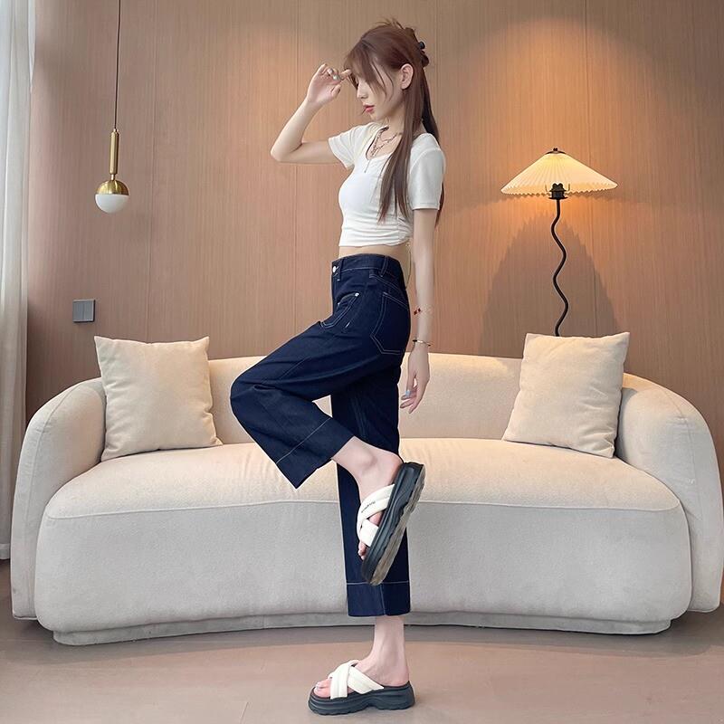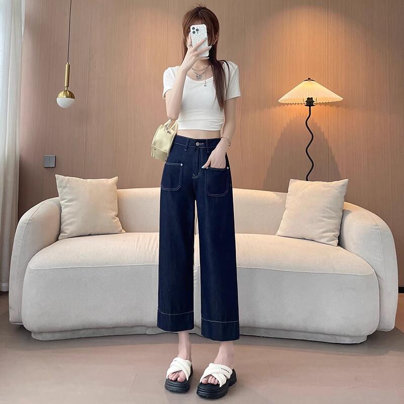 2025秋冬新款韩版7分牛仔裤女阔腿2025新款春季145小个子高腰宽松