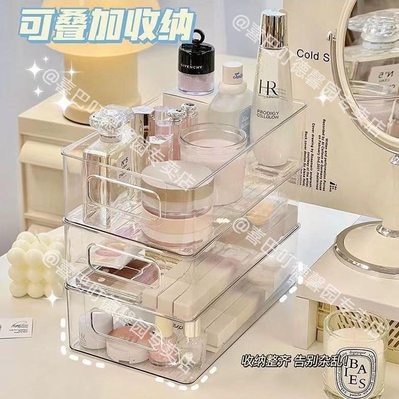 护肤品面膜收纳盒整理桌面宿舍筐透明置物架家用零食化妆品文具