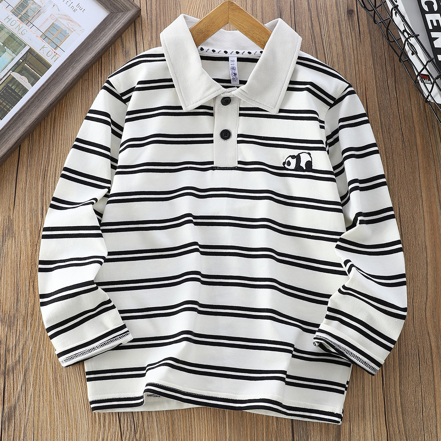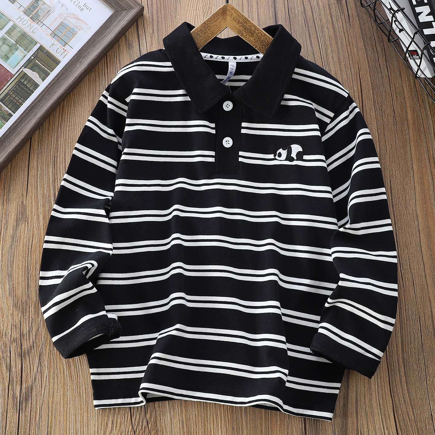 男童纯棉长袖条纹T恤polo衫