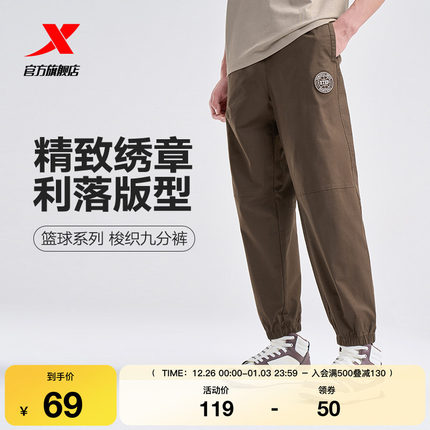 特步运动裤男士春秋季梭织九分裤宽松裤子潮流长裤百搭休闲裤