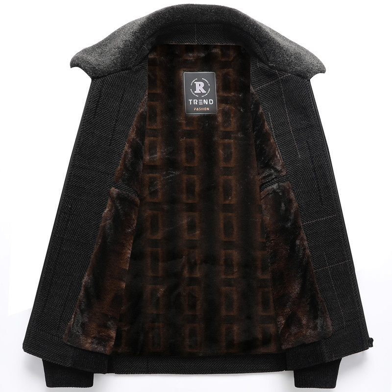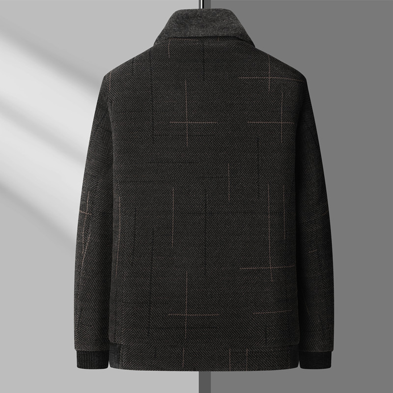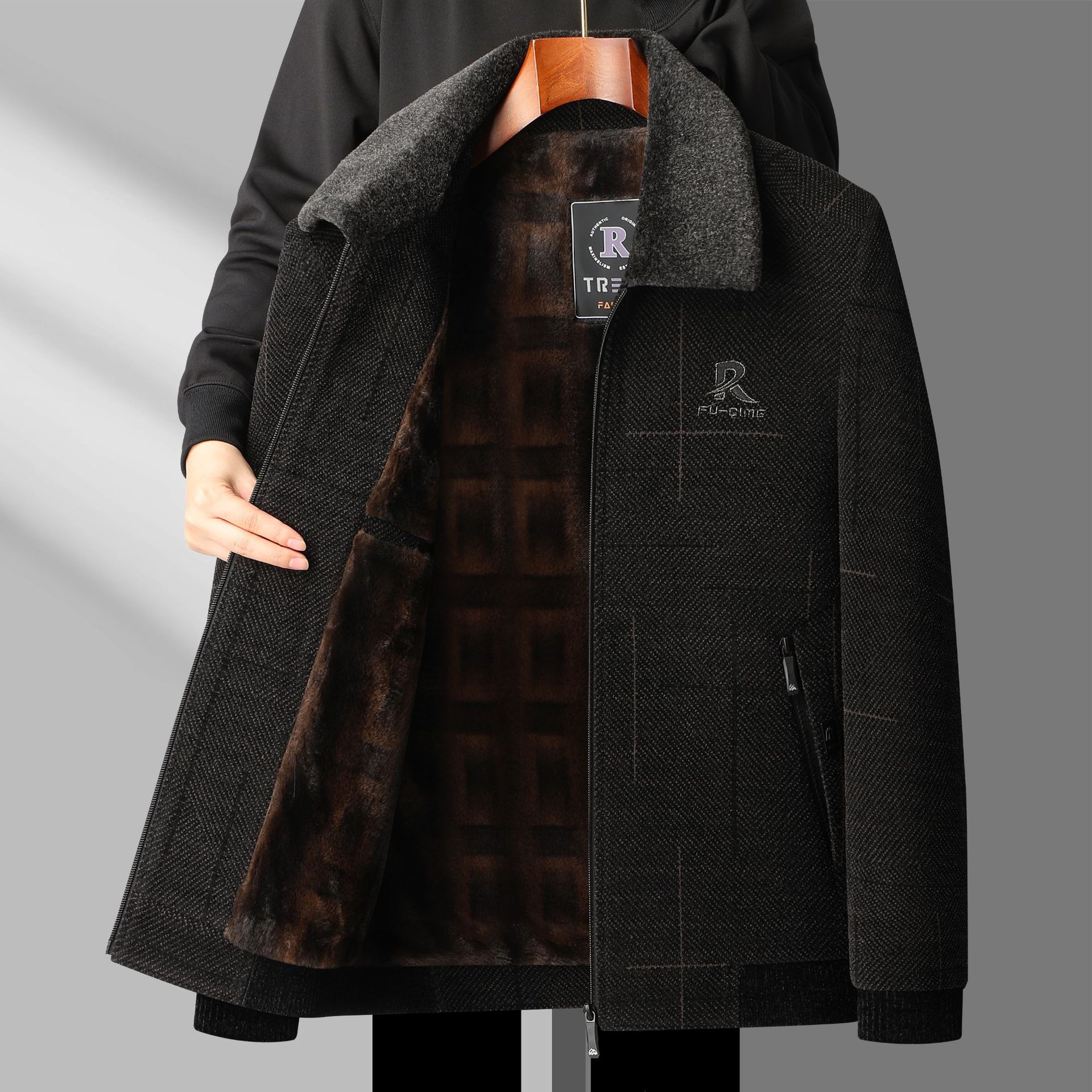 男士雪尼尔加绒加厚毛呢夹克2024冬季中老年爸爸装男装保暖外套