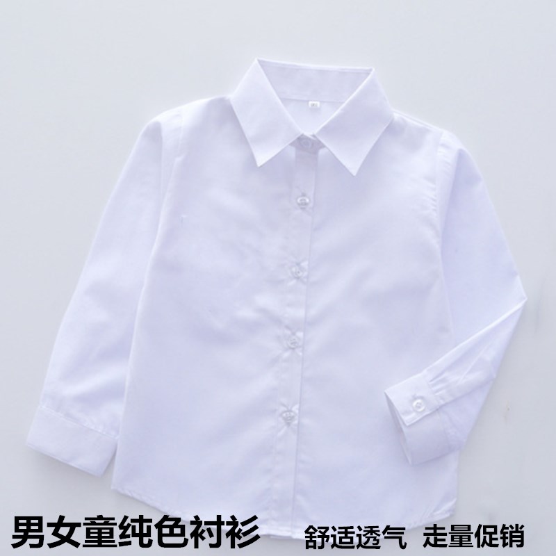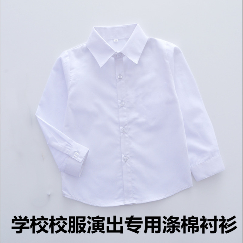 儿童演出服男童长袖涤棉纯白色衬衣女童中大童小学生短袖衬衫夏款