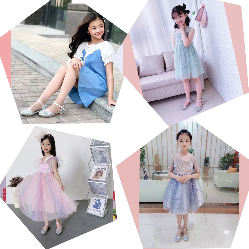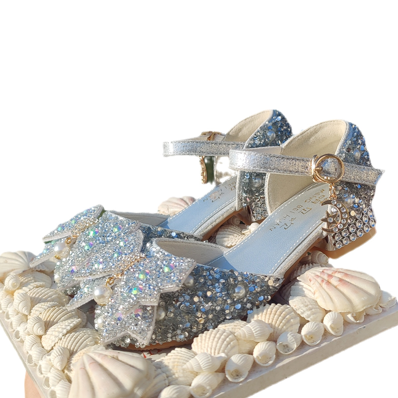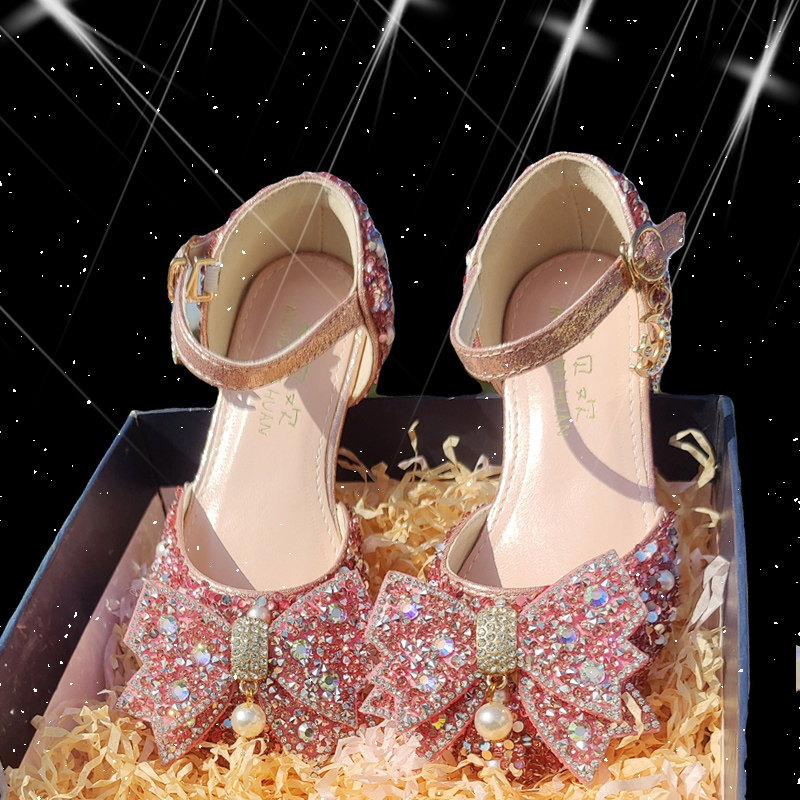 水晶鞋女儿童高跟钻公主学院风小女孩生日洋气闪亮韩系小皮鞋走秀