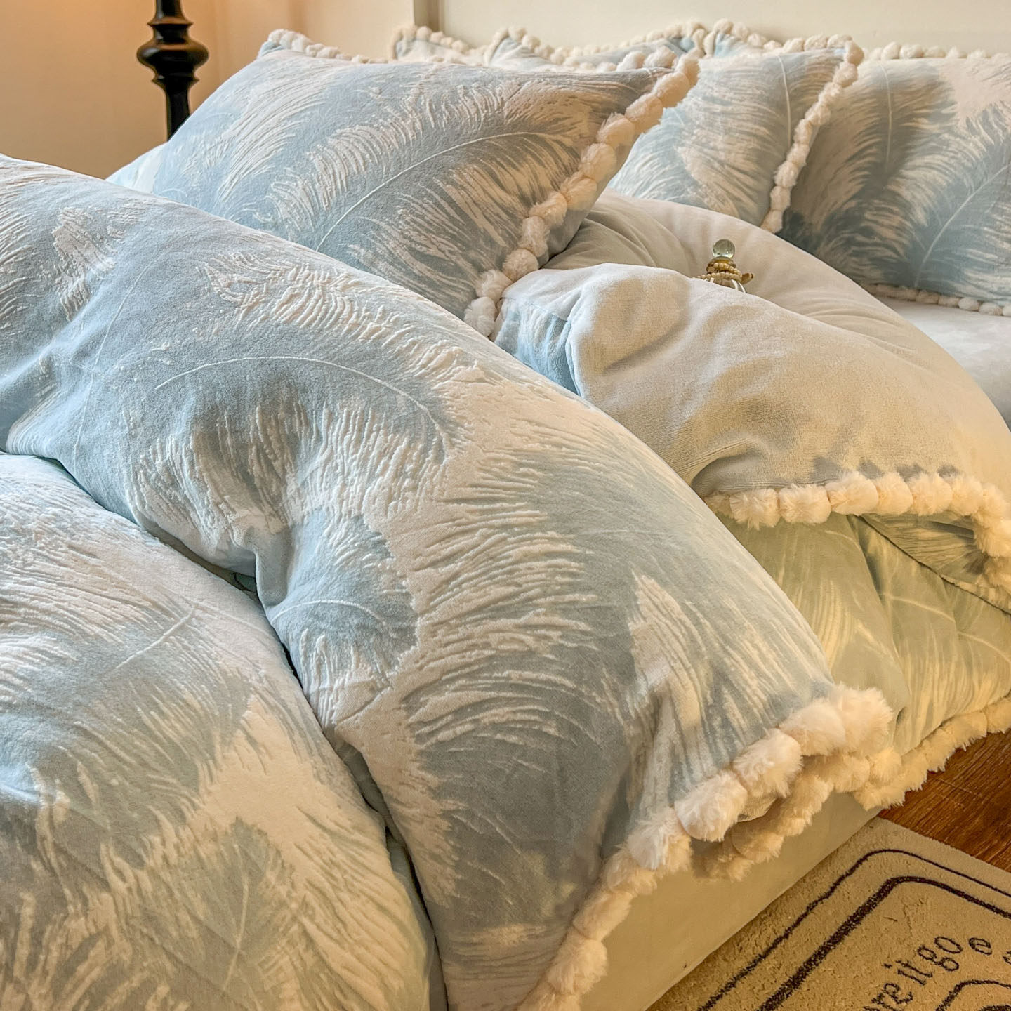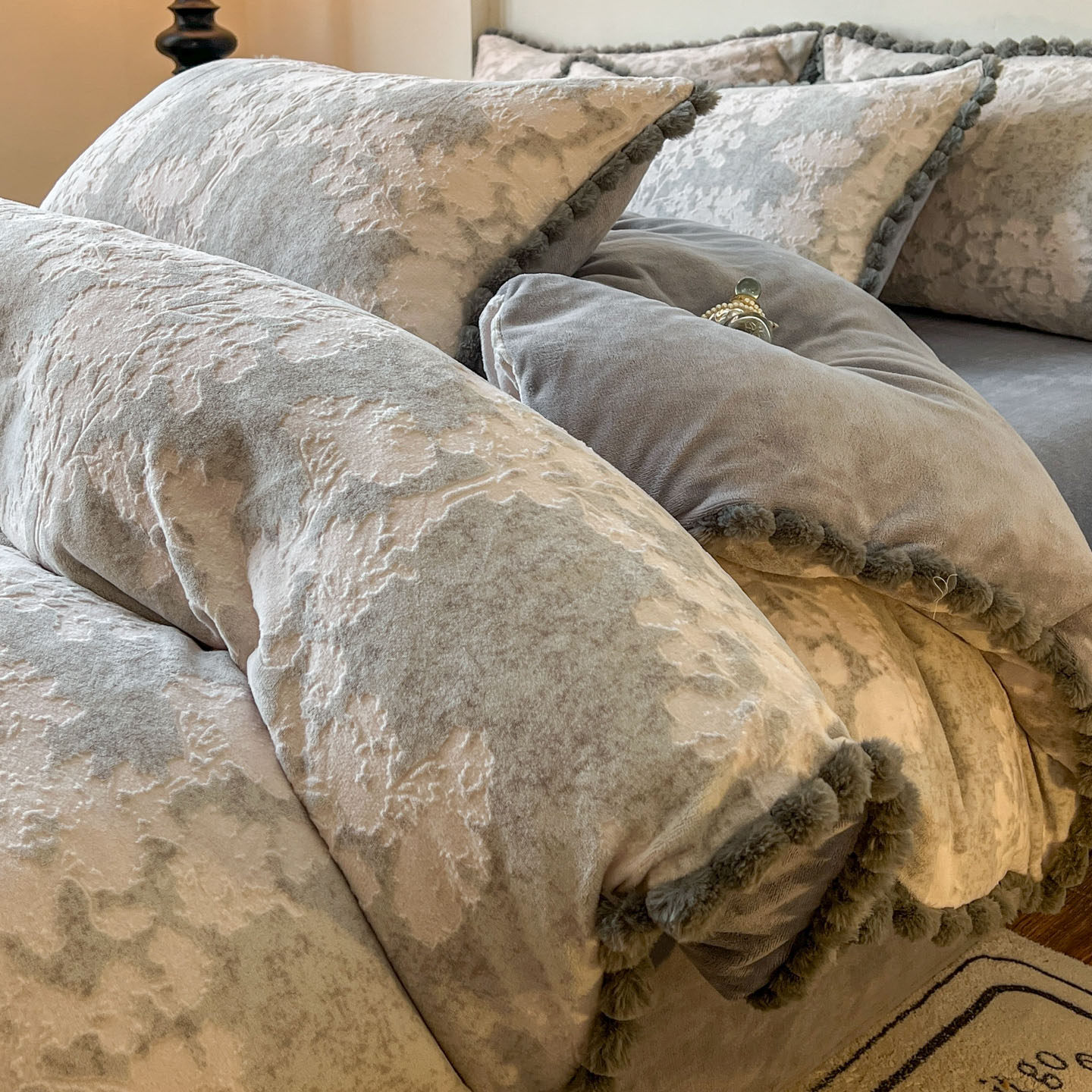 法式床上四件套牛奶绒冬季雕花绒珊瑚绒被套A类加厚床单三件套冬
