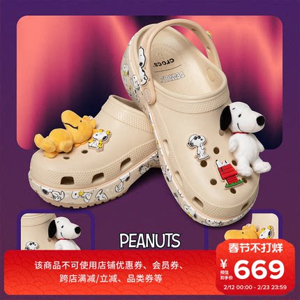Crocs卡骆驰史努比经典云朵洞洞鞋户外包头拖鞋女鞋花园鞋|212118