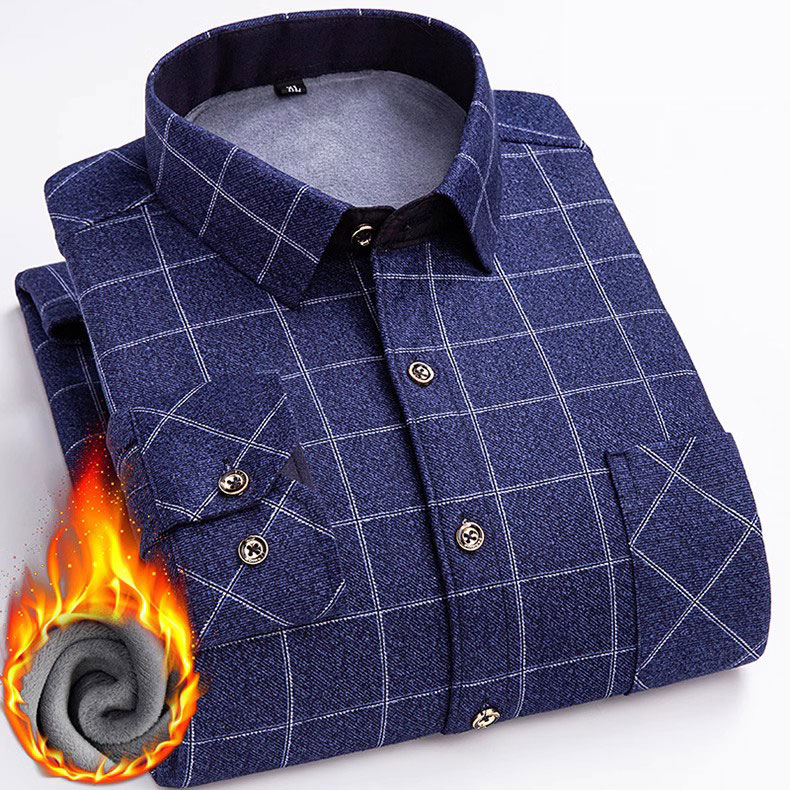 秋冬季中年男长袖保暖衬衫加绒加厚宽松父亲大码衬衣中老年爸爸装