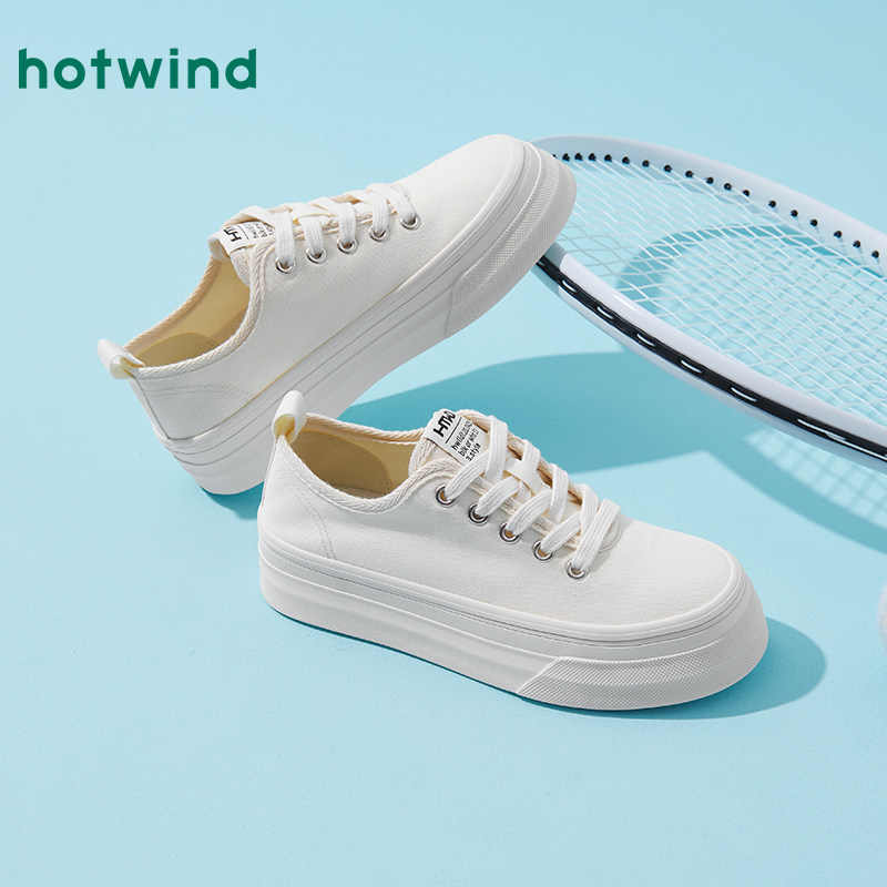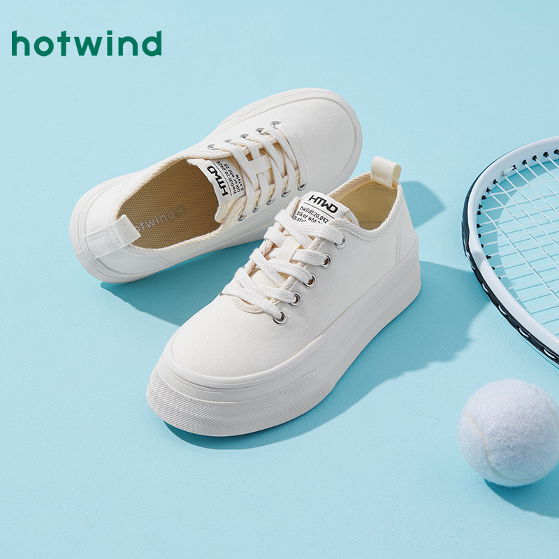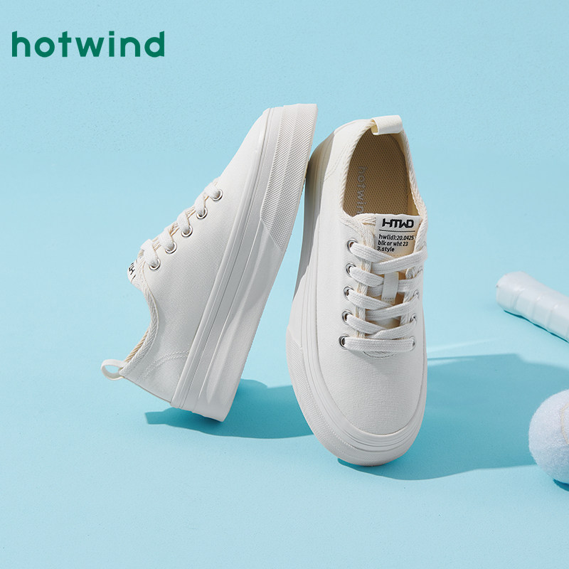 热风厚底帆布鞋女款2025年春季新款简约纯色休闲鞋百搭小白鞋女鞋