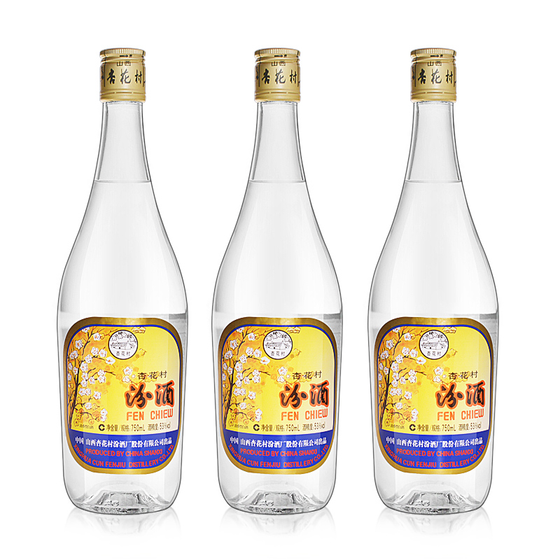 汾酒53度出口玻璃瓶750ml三瓶套装山西杏花村国产高粱白酒