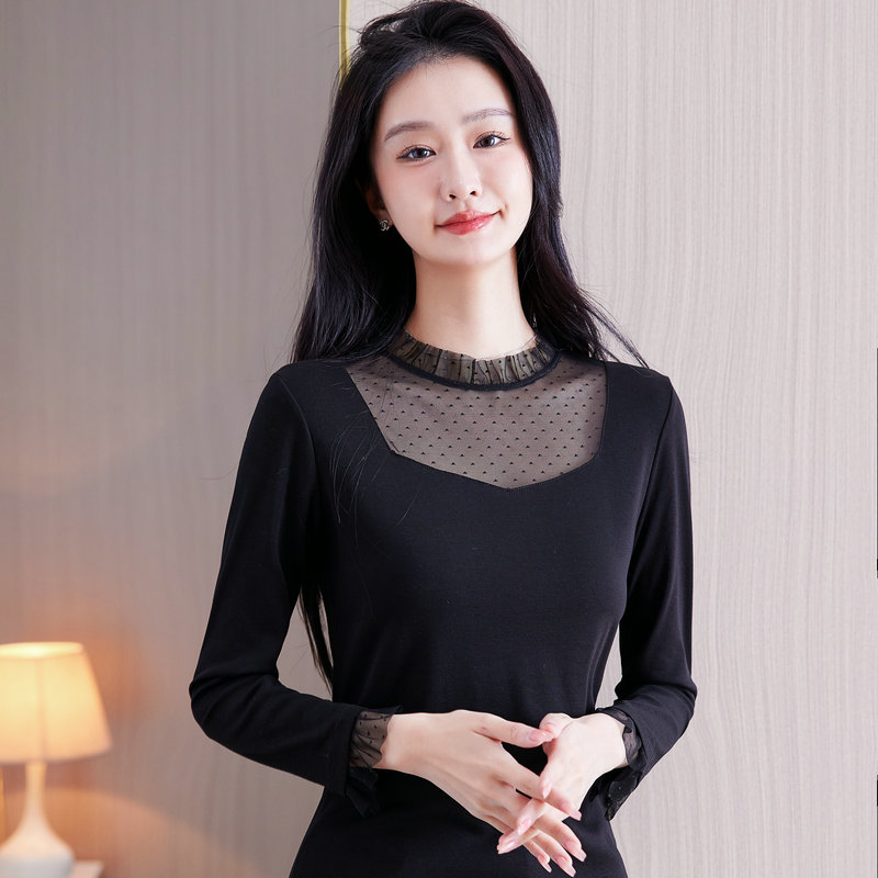 2025春秋新款黑色莫代尔打底衫女内搭时髦洋气小衫t恤蕾丝上衣潮