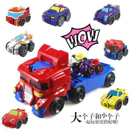 迷你小汽车变形玩具Q版擎天领袖黄蜂战士男孩套装机器人礼盒装3岁