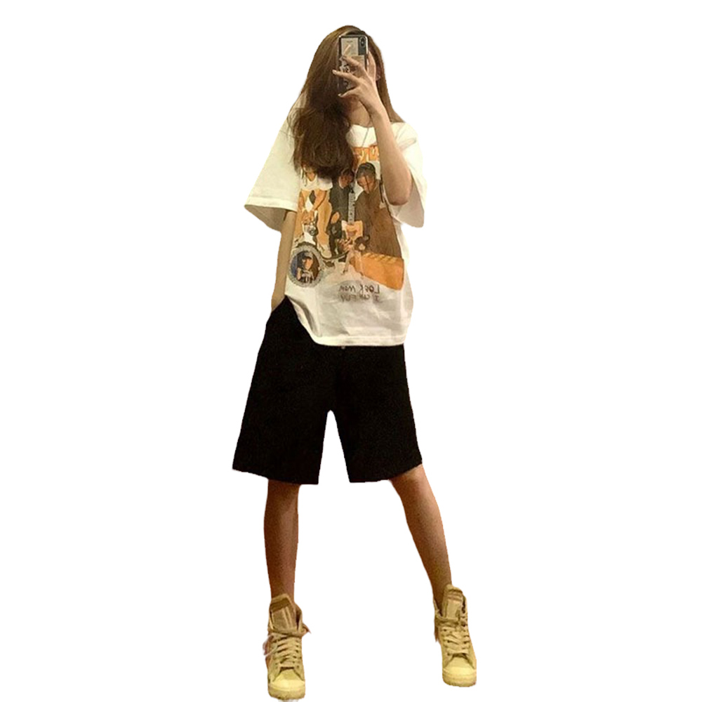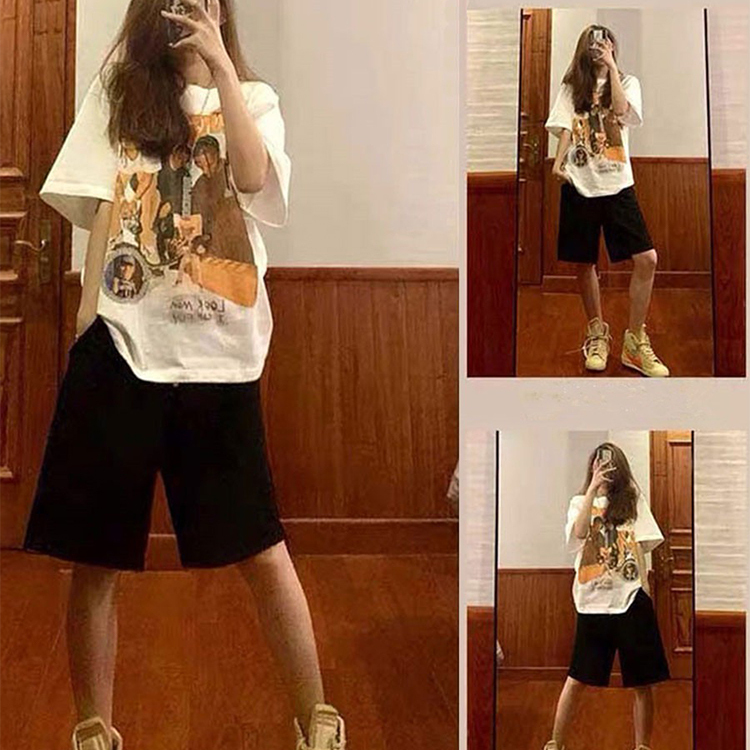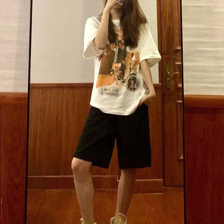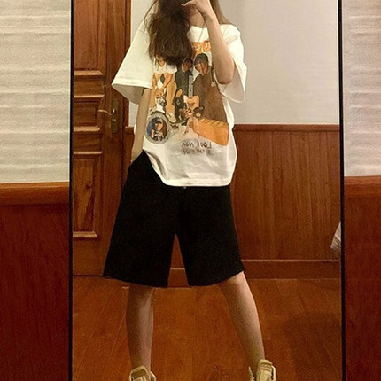 黑色运动短裤女夏季薄款休闲大码宽松显瘦直筒中裤高腰阔腿五分裤