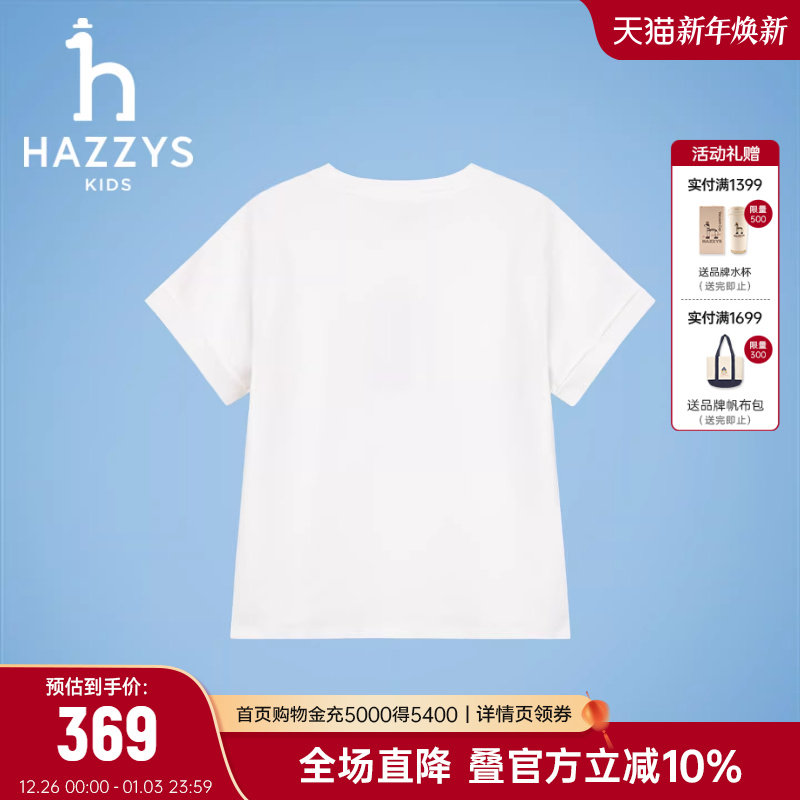 hazzys哈吉斯童装男童短袖26夏新中大童液氨双面布学院风短袖T恤