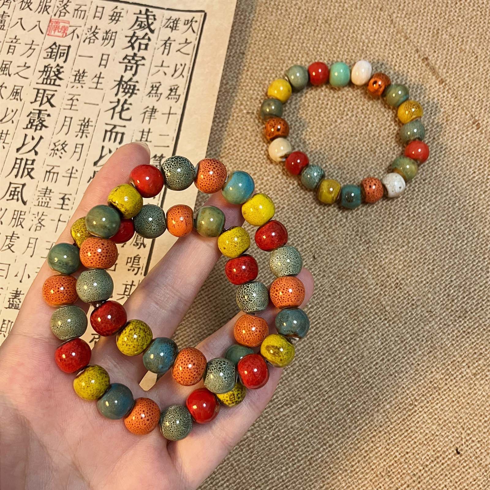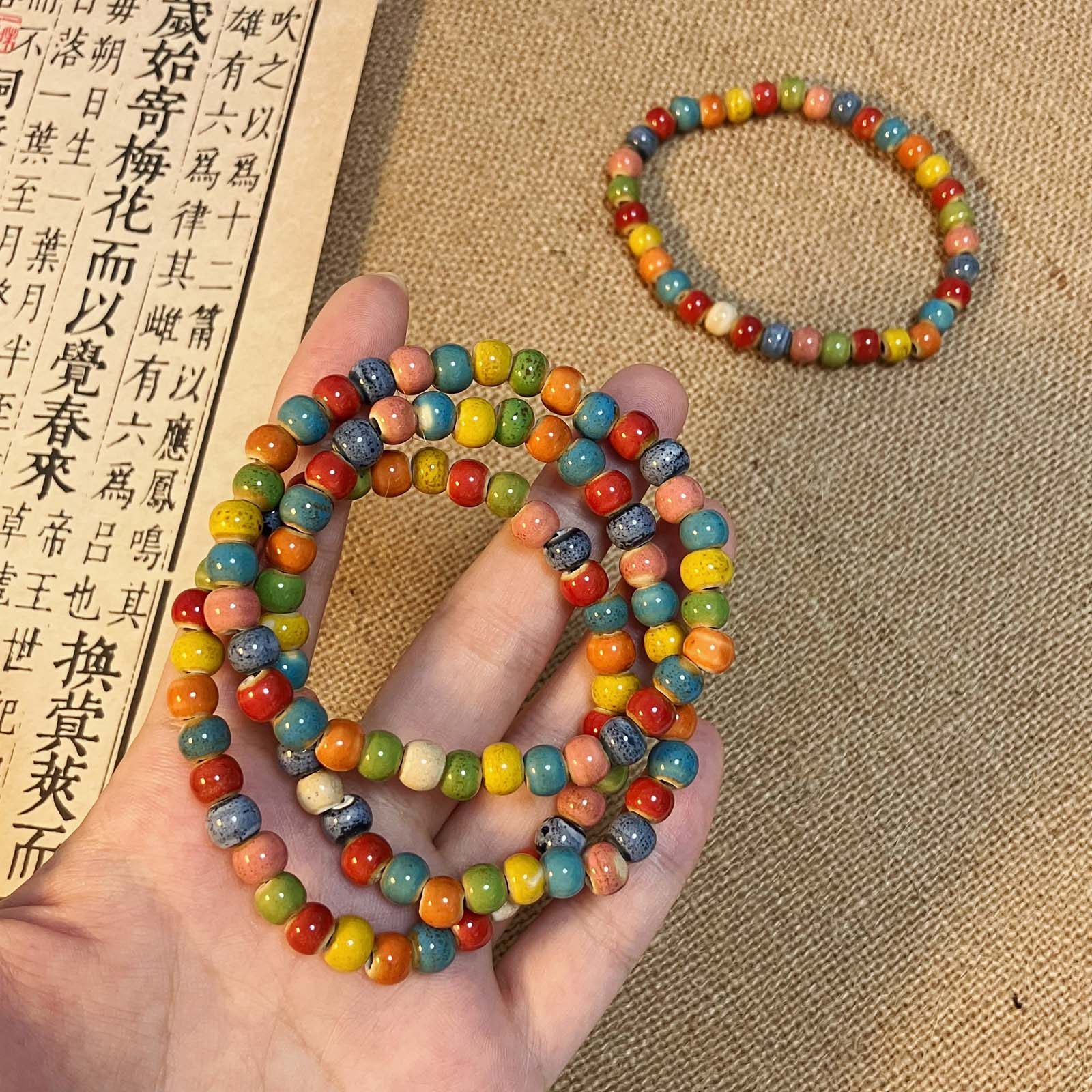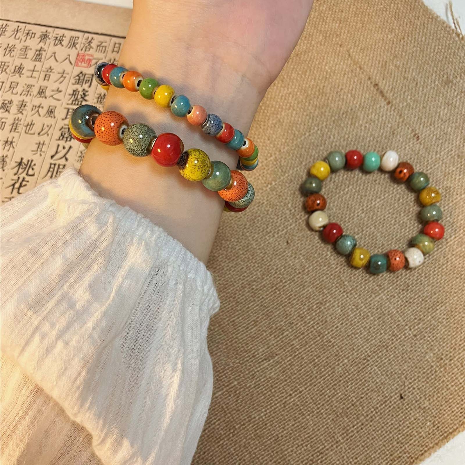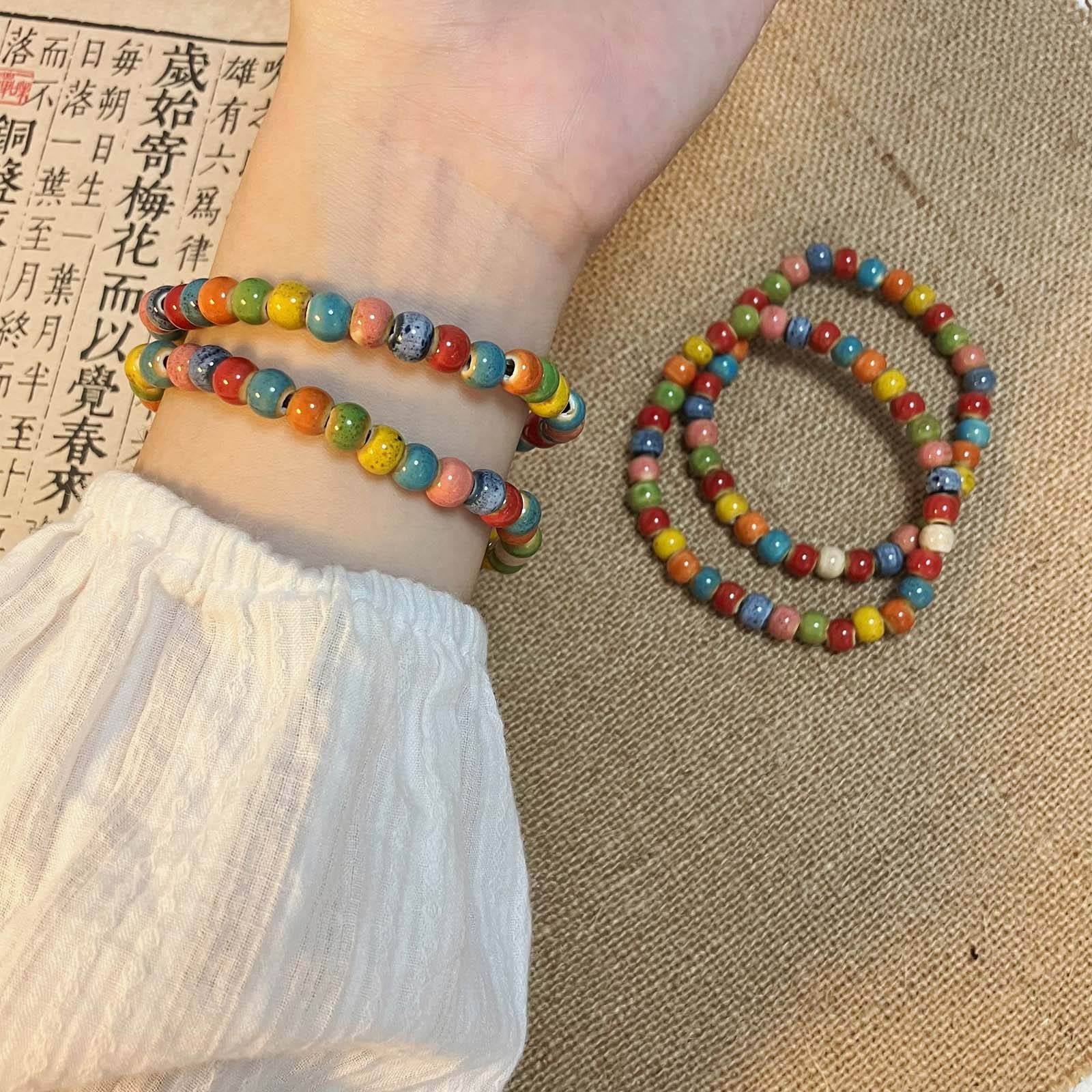 多巴胺彩色陶瓷串珠手链女小众设计波西米亚手串气质弹力叠戴手饰
