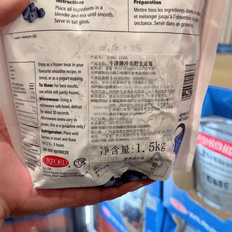Costco代购开市客加拿大牛津Oxford冷冻野生蓝莓1500g 顺丰配送